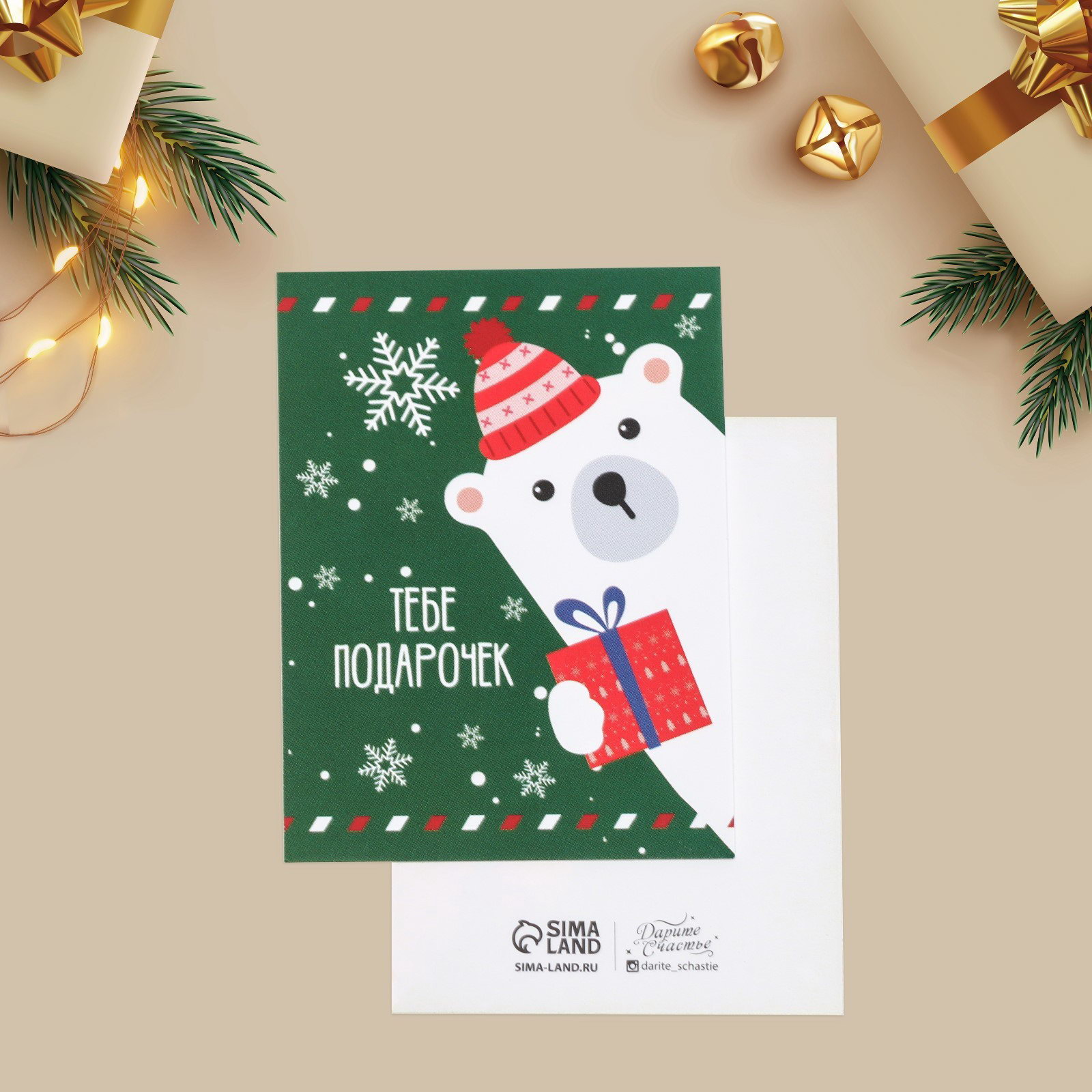Открытка-мини новогодняя "Тебе подарочек", 6 x 8 см, Дарите Счастье, Россия