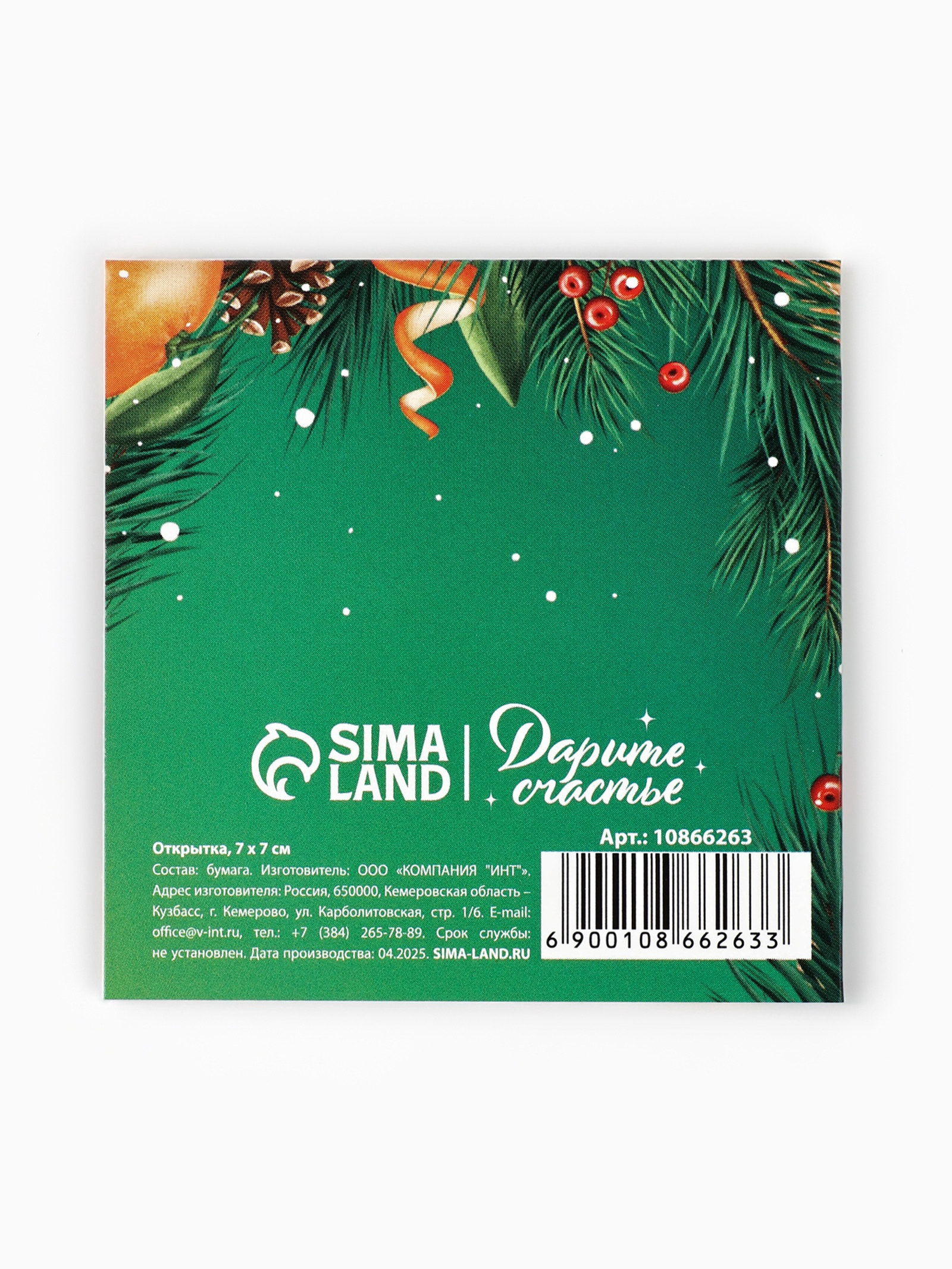 Размер упаковки: 7 x 0.1 x 7 см. tnved: 4909000000 Особенности: Без особенностей Отделка: Без отделки Адресат: Без адресата Символ года: Нет Тематика праздника: Новый год Форма: Квадрат Размер: Мини (до 8 см) см | ||