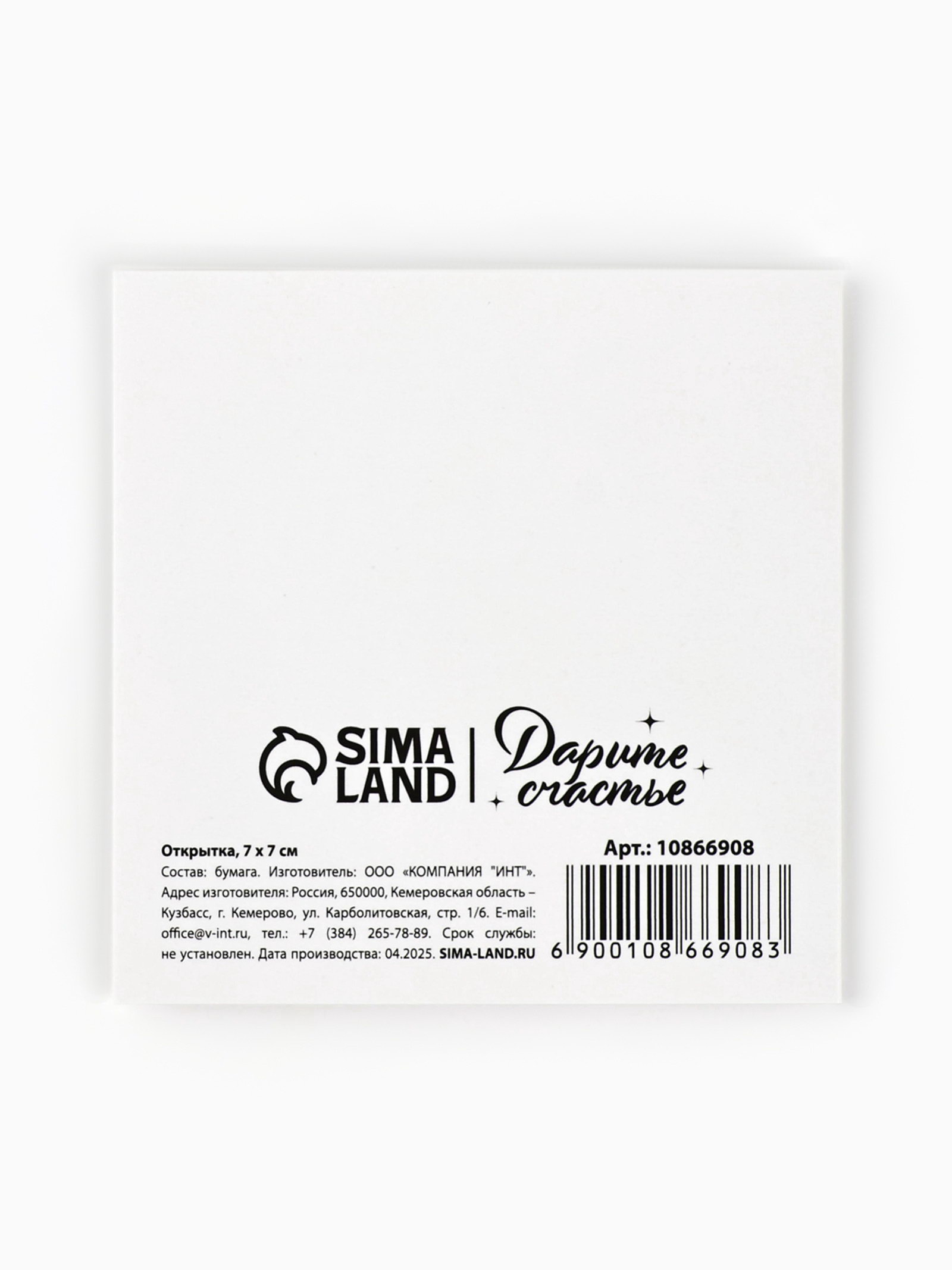 Цвет: Белый, Разноцветный Размер упаковки: 7 x 0.1 x 7 см. tnved: 4909000000 Отделка: Без отделки Символ года: Нет Тематика праздника: Новый год Форма: Квадрат Размер: Мини (до 8 см) см Особенности: Без особенностей Для кого: Унисекс | ||