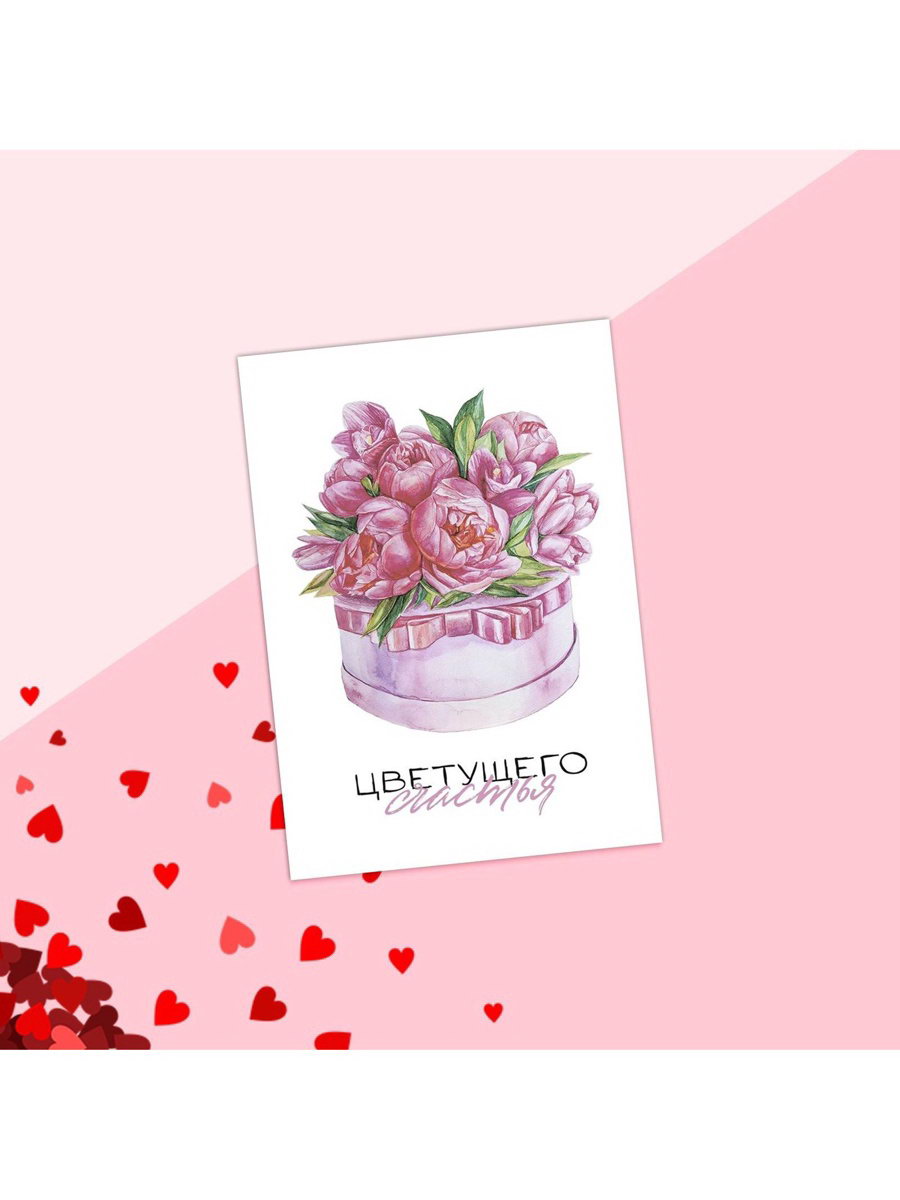 Открытка на каждый день "Цветущего счастья", 7.5x10 см, Дарите Счастье, Россия