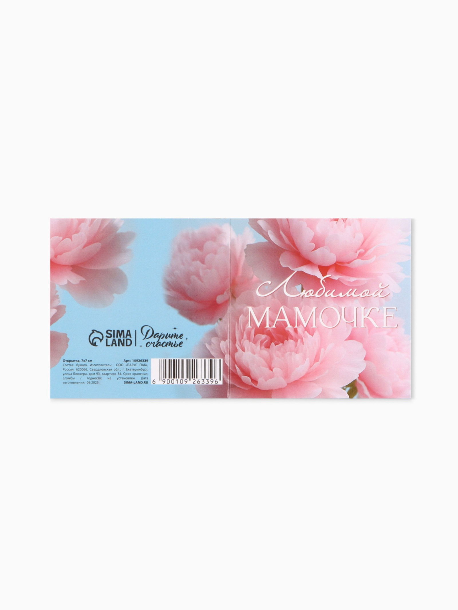 Тематика праздника: 8 Марта, День матери, День семьи, Универсальная тематика Размер упаковки: 7 x 0.1 x 7 см. tnved: 4909000000 Форма: Квадрат Размер: Мини (до 8 см) см Особенности: Без особенностей Отделка: Без отделки | ||