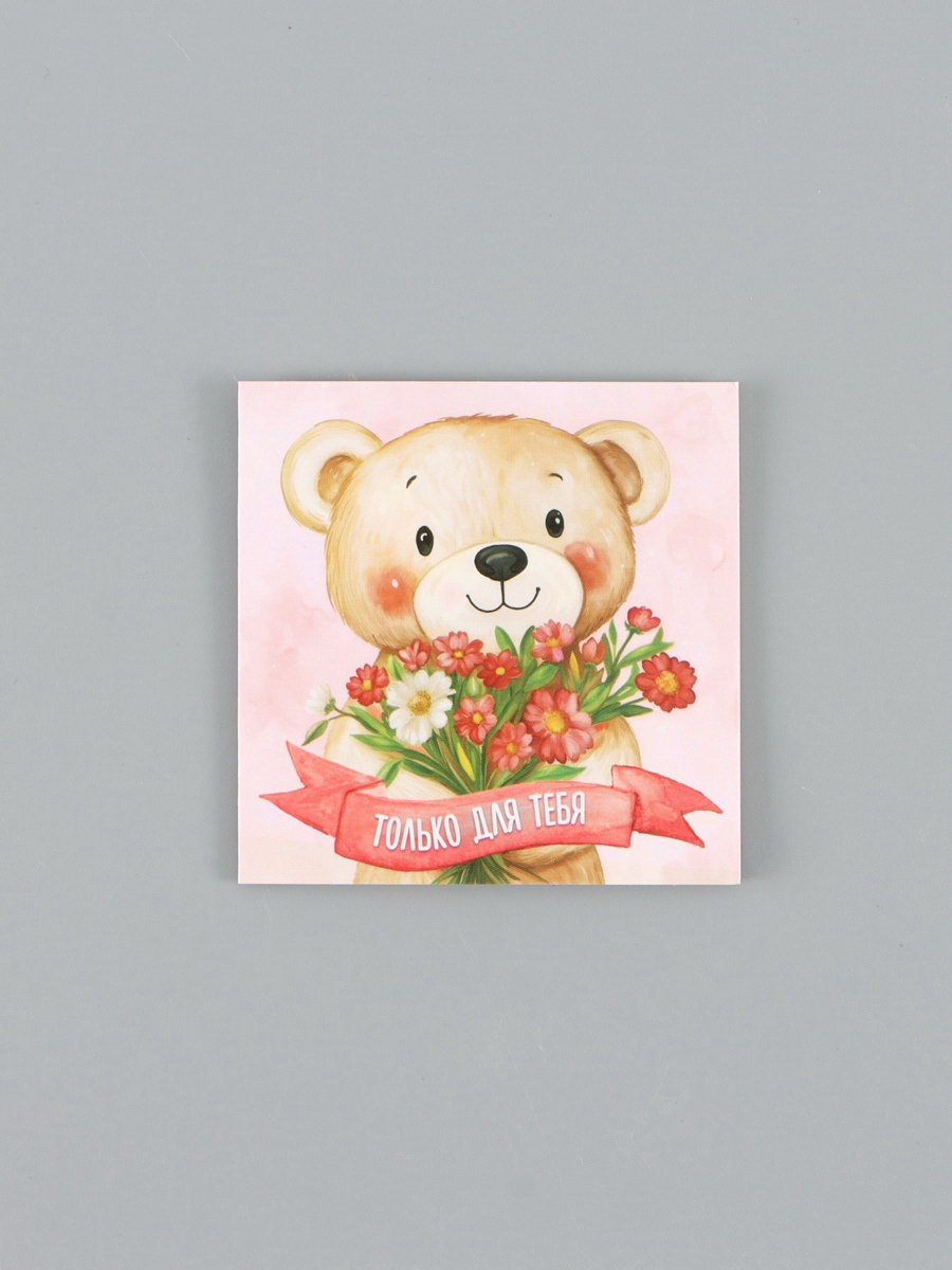 Открытка мини "Мишка с цветами", 7 x 7 см, Россия