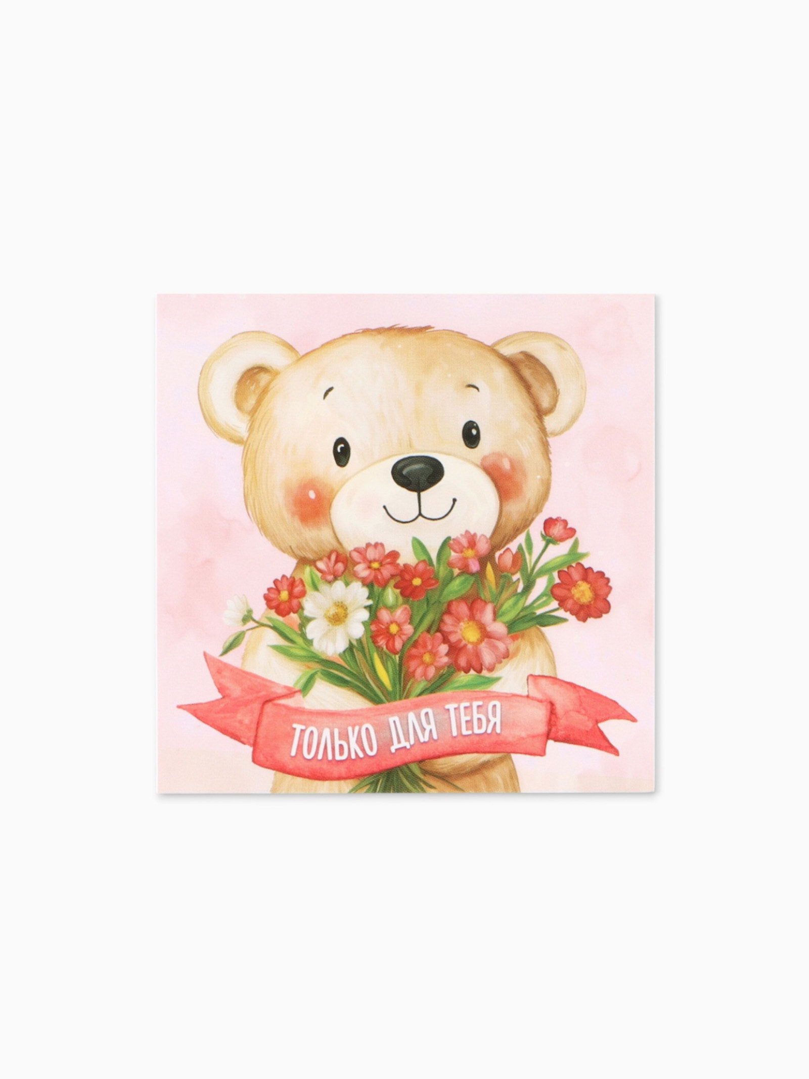 Открытка мини "Мишка с цветами", 7x7 см, Дарите Счастье, Россия