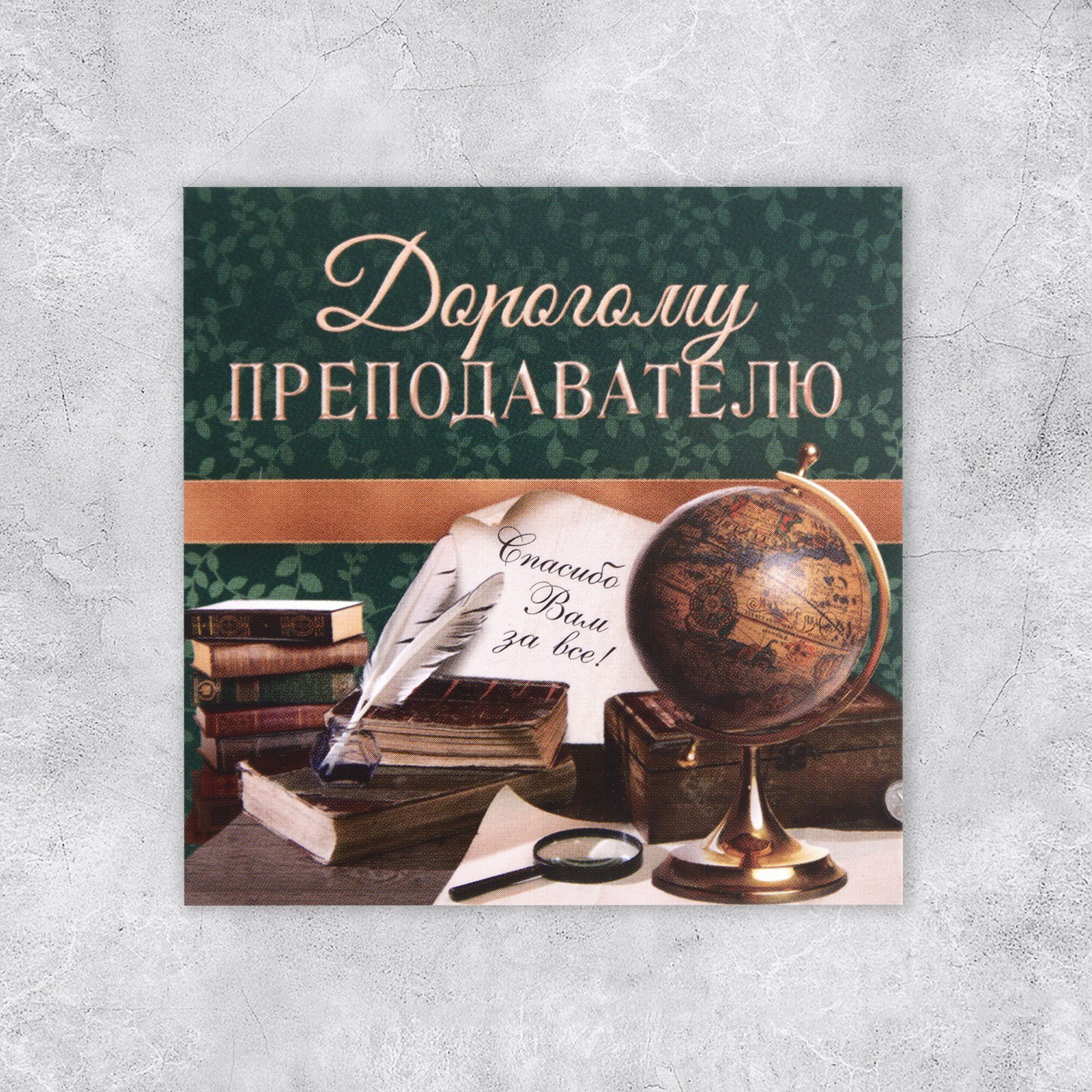 Открытка "Дорогому преподавателю", глобус, 7 x 7 см, Дарите Счастье, Россия