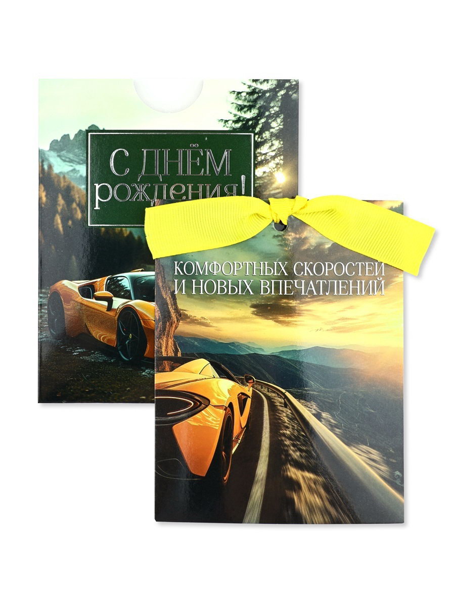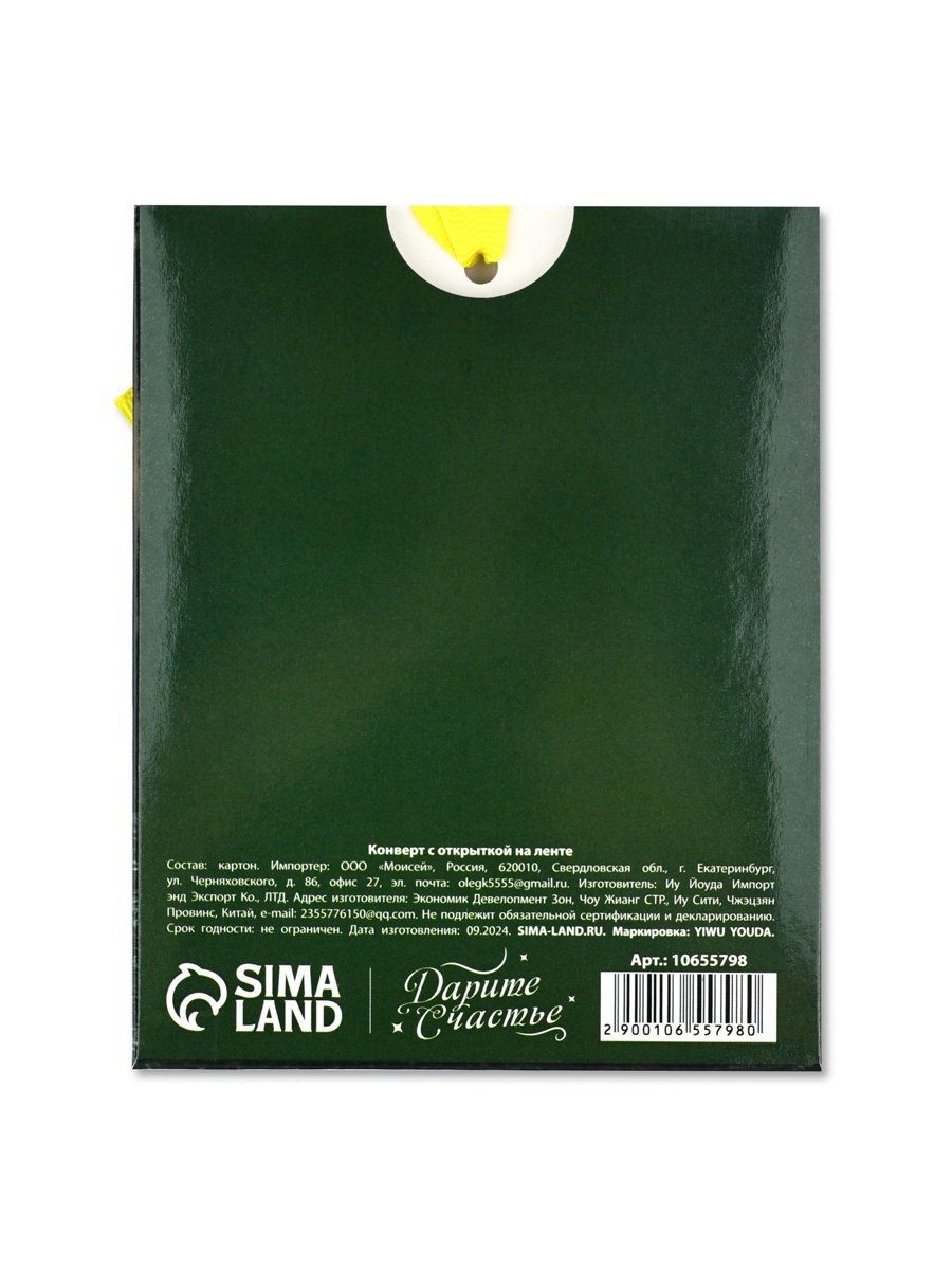 Открытка с конвертом на ленте "С днём рождения!", тиснение, 10x12.5 см, 10x12.5x0.2 см., Дарите Счастье, Китай