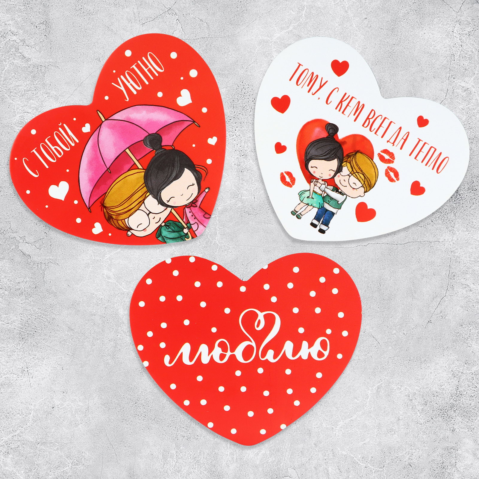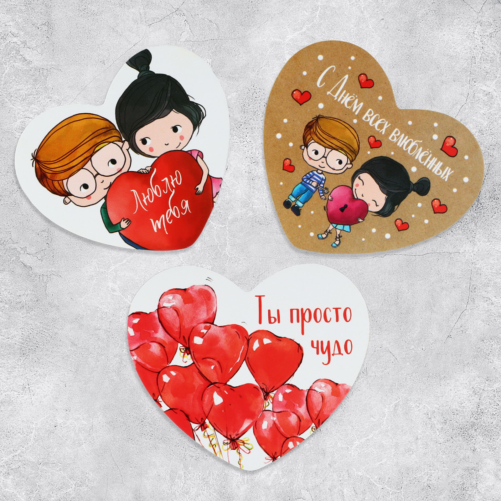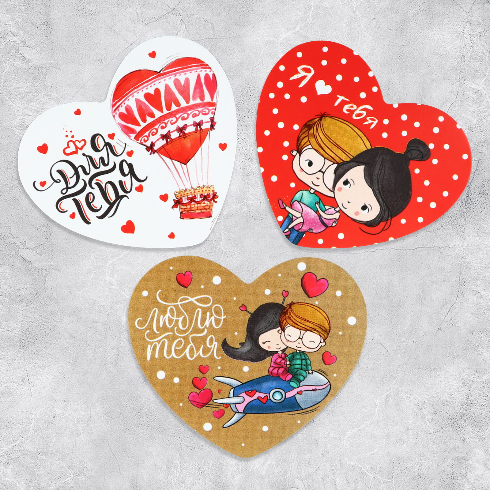 Открытки-валентинки МИКС "Любовные истории", 7 x 6 см, Дарите Счастье, Россия