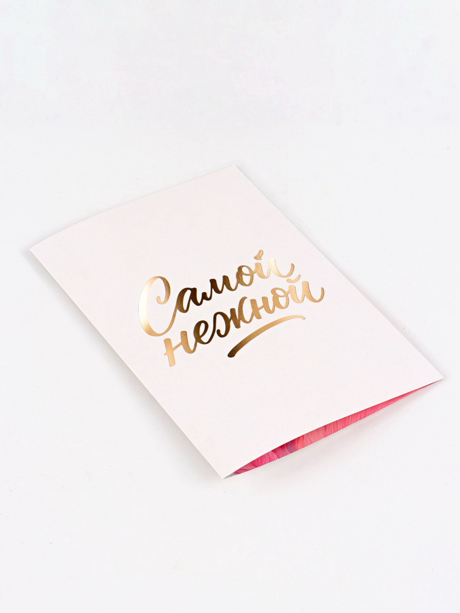 Открытка "Самой нежной", перья, тиснение, софт тач, 12x18 см, 0.1x12x18 см., Дарите Счастье, Китай