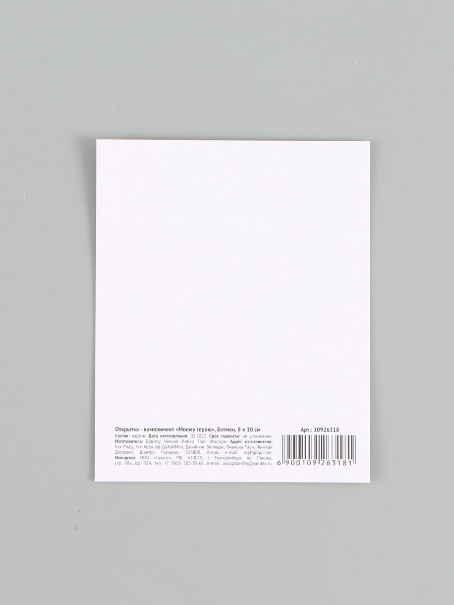 Открытка - комплимент "Моему герою", 8 x 10 см, Дарите Счастье, Россия