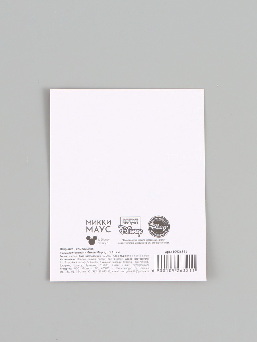 Открытка - комплимент, поздравительная "Мышонок", 8 x 10 см, Дарите Счастье, Россия
