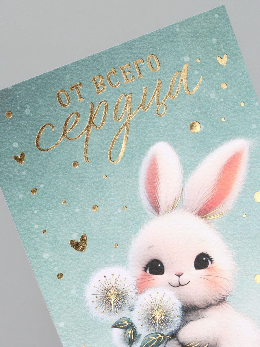 Поздравительная открытка на акварельном картоне с тиснением "От всего сердца", 10 x 15 см, 15x10x0.1 см., Дарите Счастье, Китай
