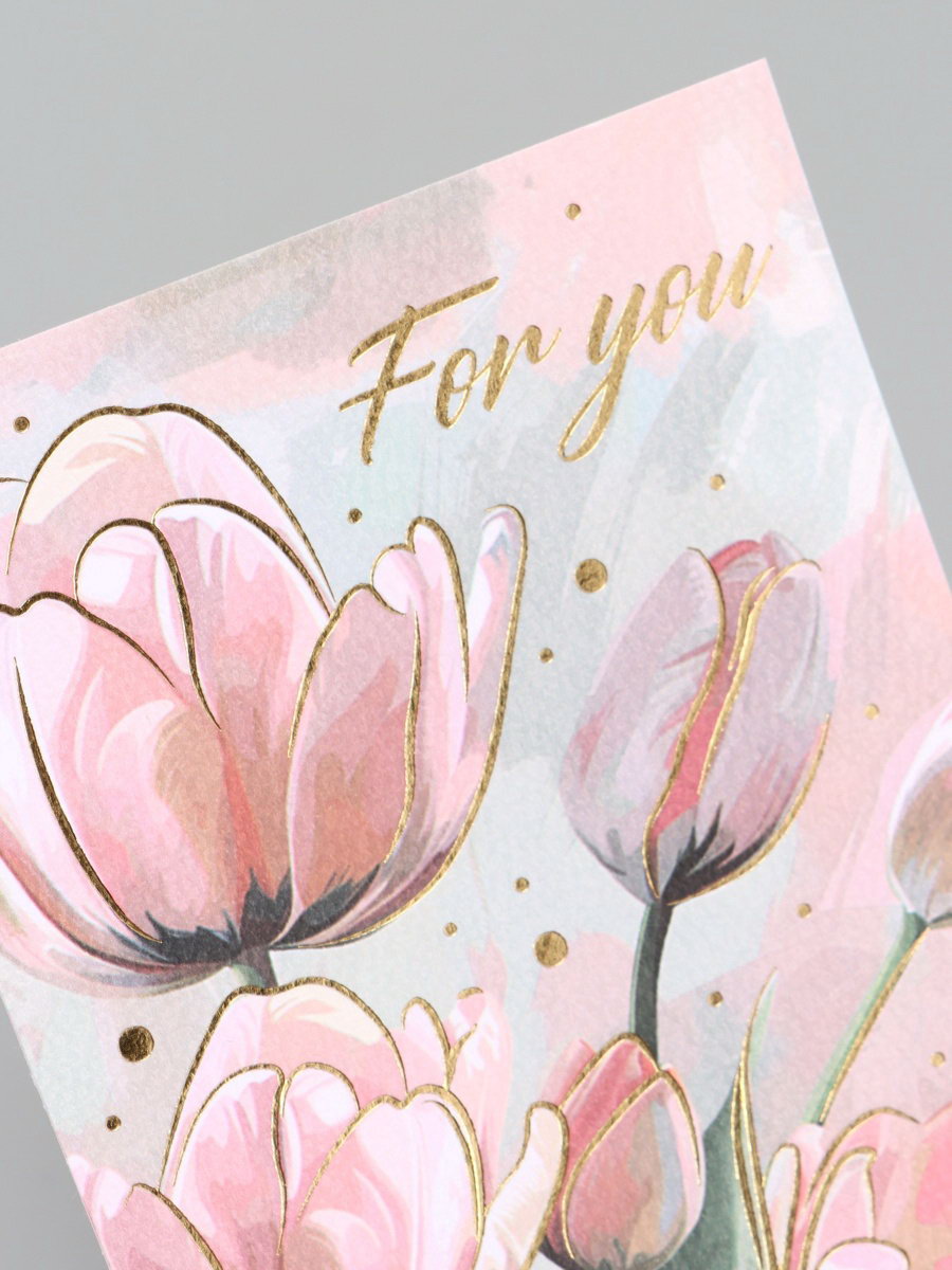 Поздравительная открытка на акварельном картоне с тиснением For you, 10 x 15 см, 15x10x0.1 см., Дарите Счастье, Китай