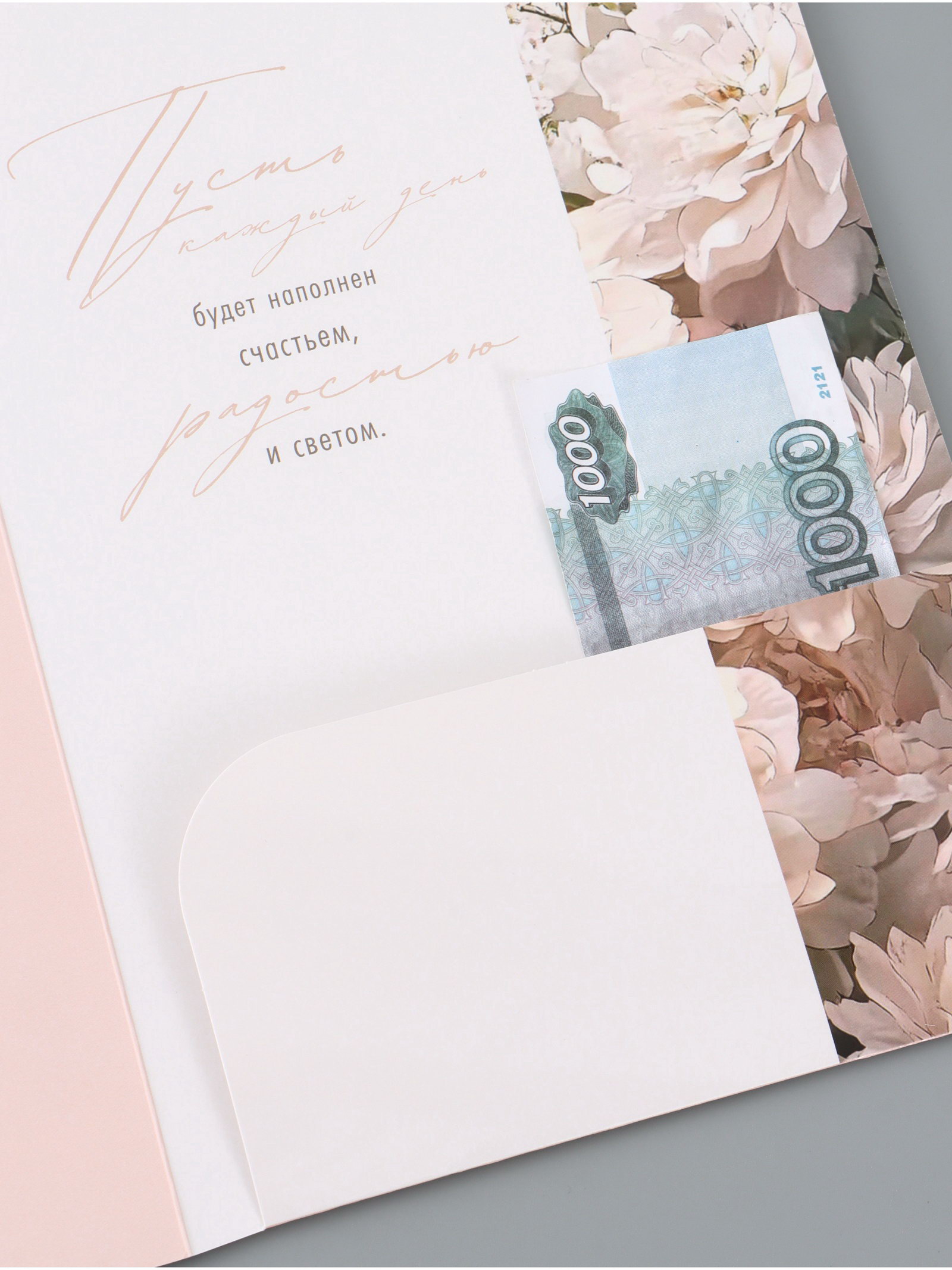 Открытка поздравительная с карманом для денег "Цветы", 19 x 29 см, Дарите Счастье, Россия