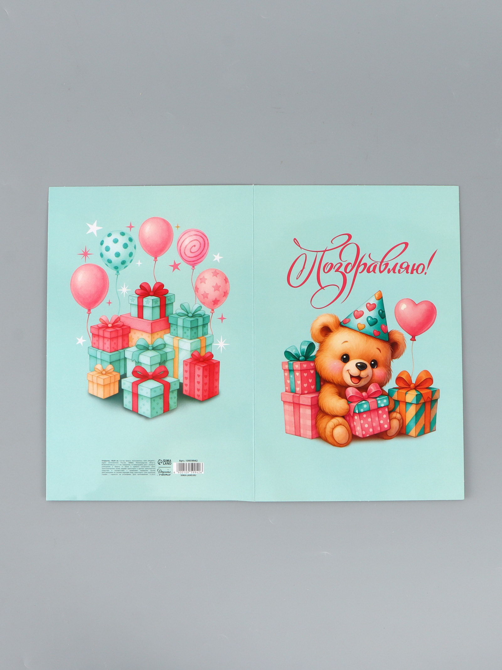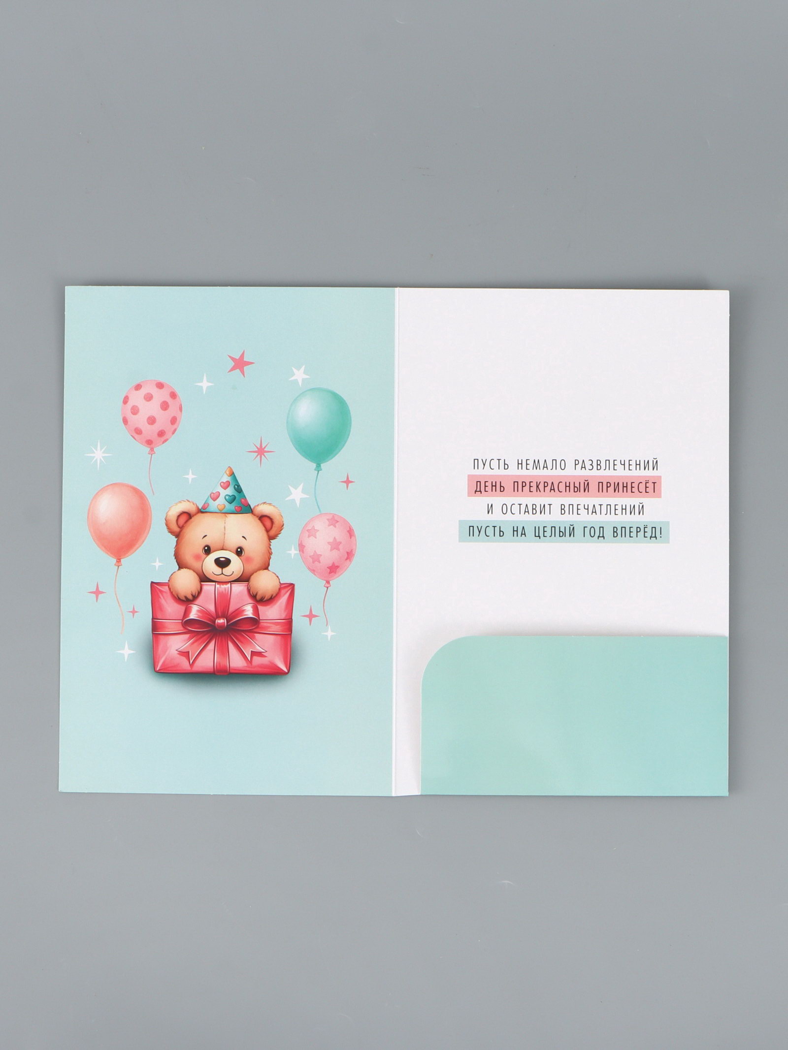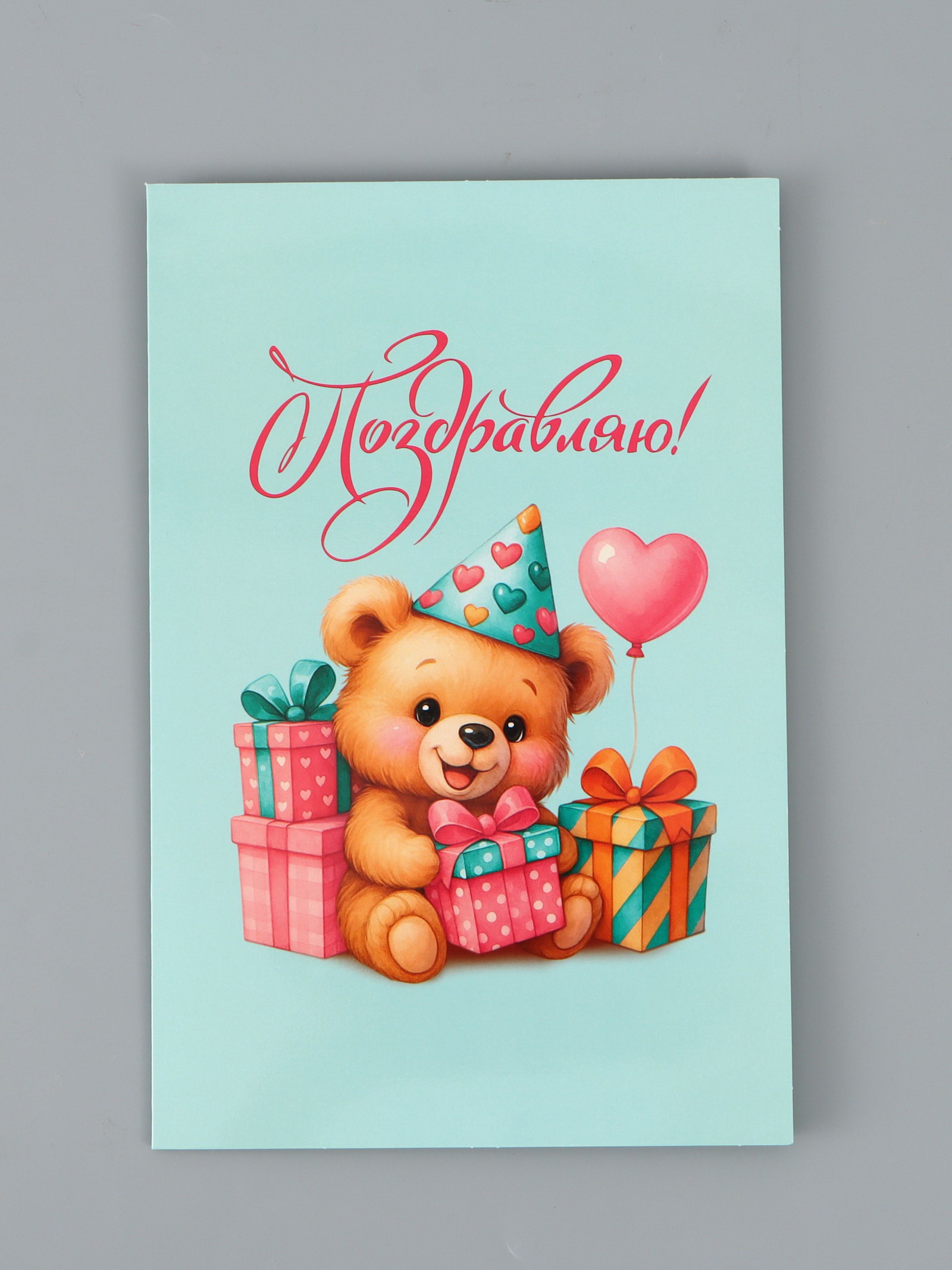 Открытка поздравительная с карманом для денег "Поздравляю", мишка, 19 x 29 см, Дарите Счастье, Россия