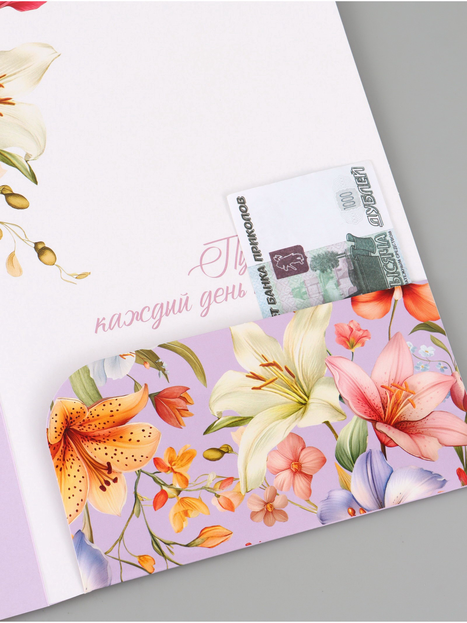 Открытка поздравительная с карманом для денег "Цветочная", 19 x 29 см, Дарите Счастье, Россия