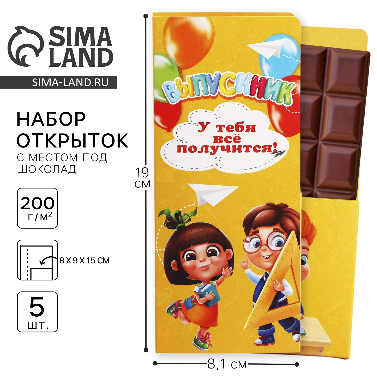 Открытки с местом для шоколадки, набор из 5 шт. "Выпускник! У тебя всё получится!", ArtFox, Россия