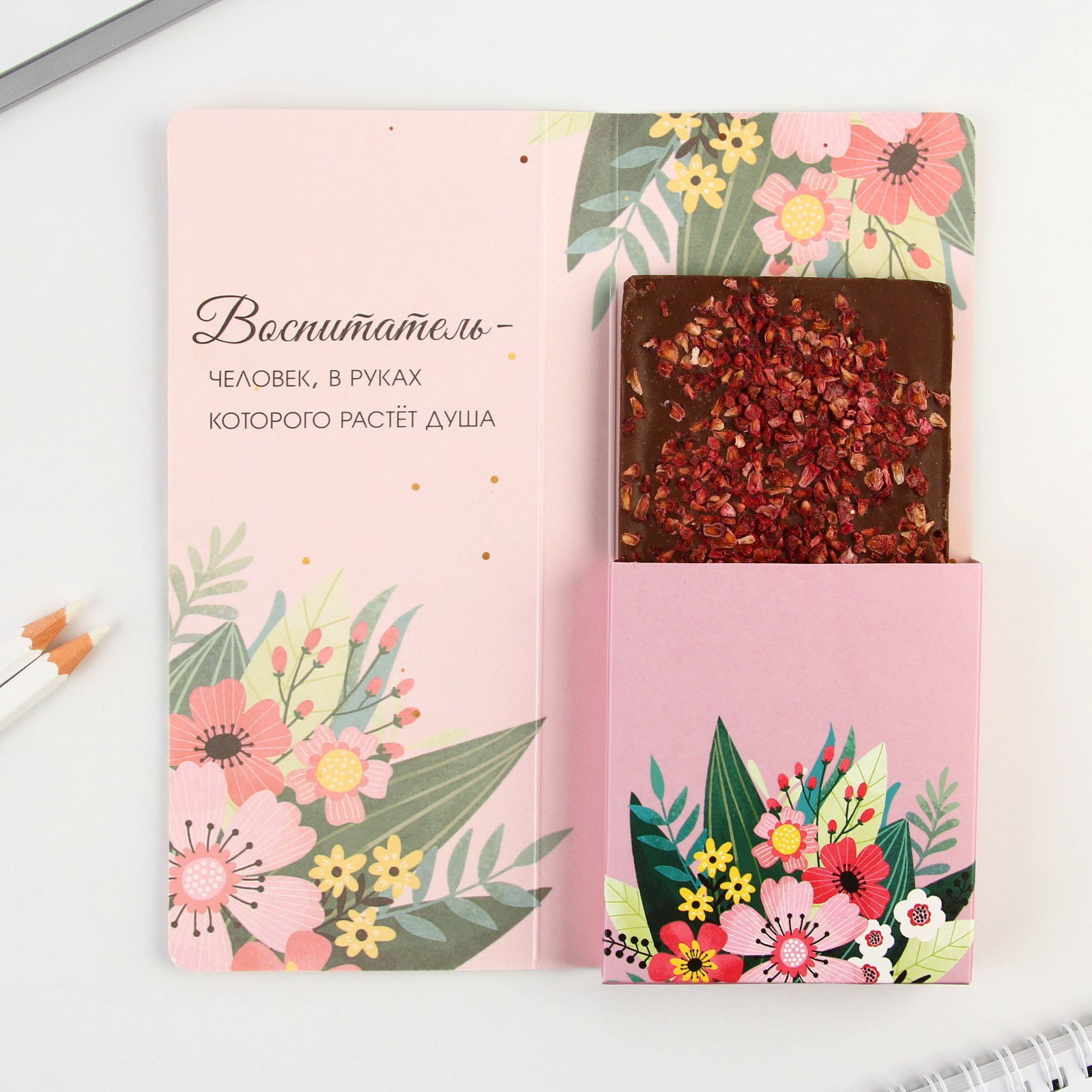 Открытки с местом под шоколадку "С любовью воспитателю!", набор 5 шт., Россия