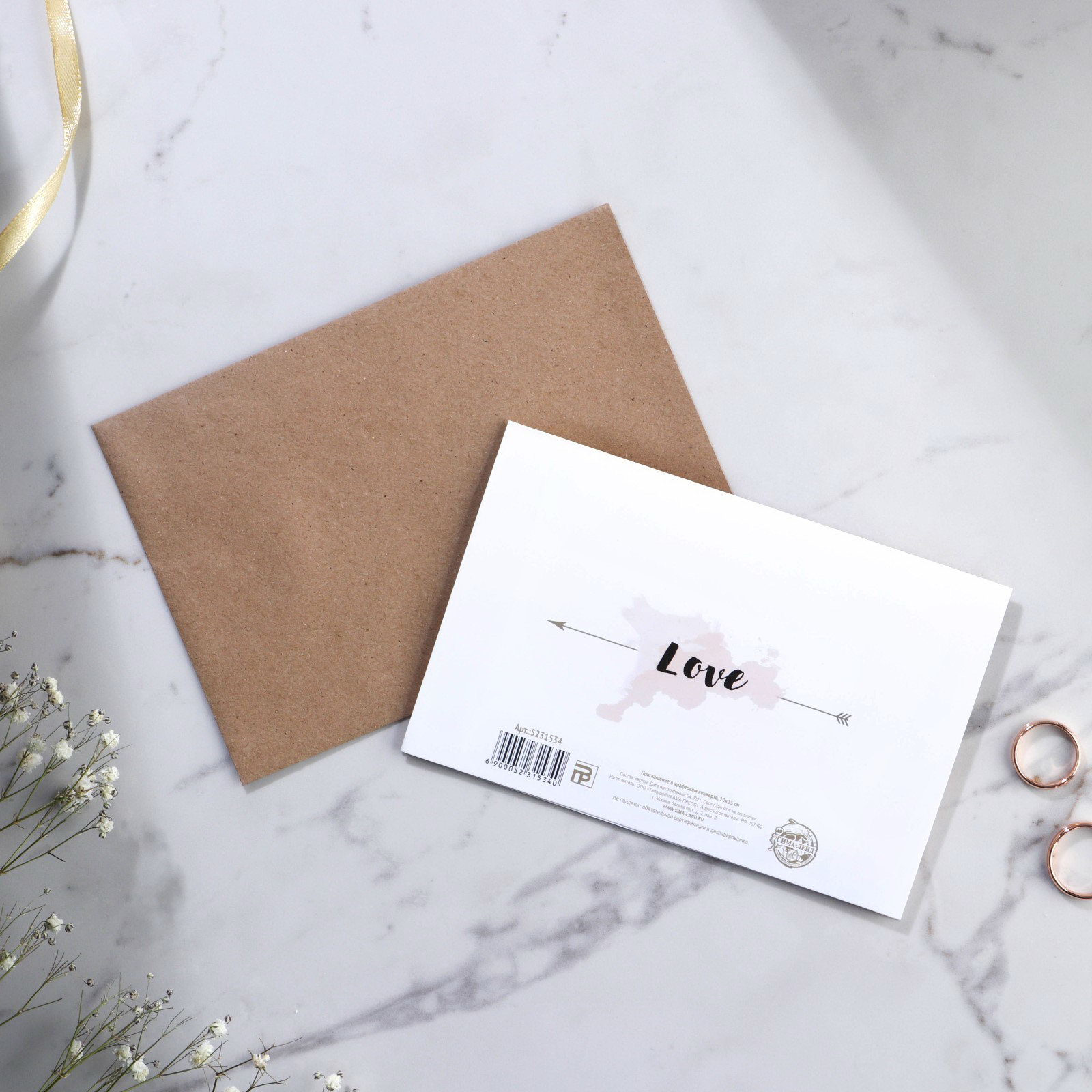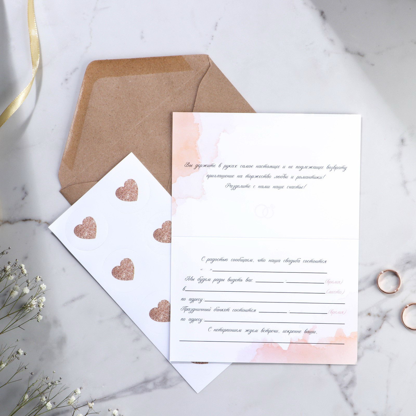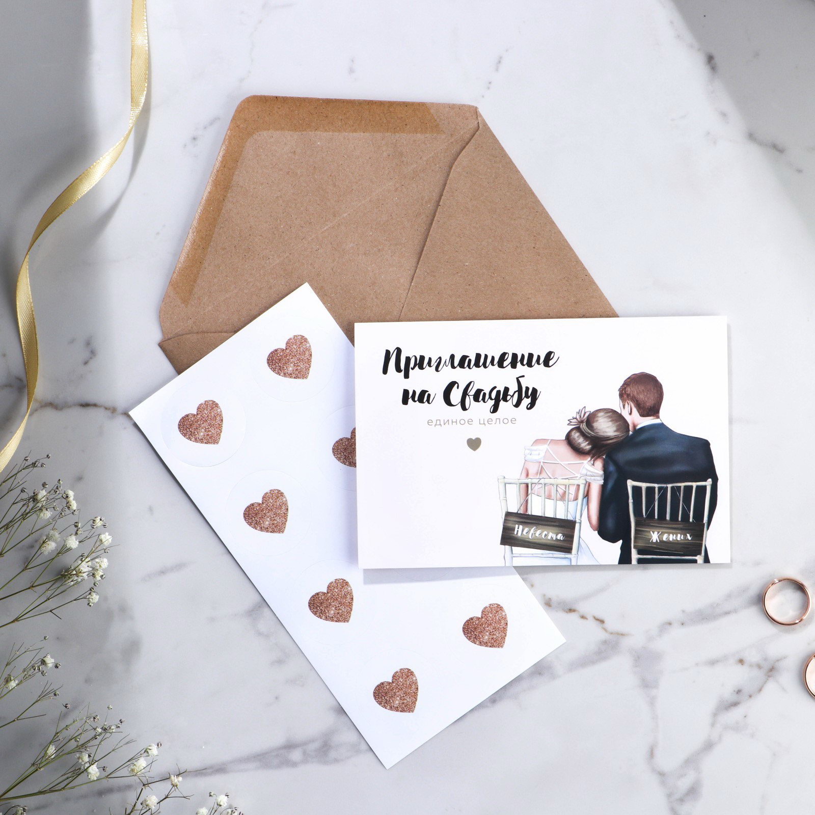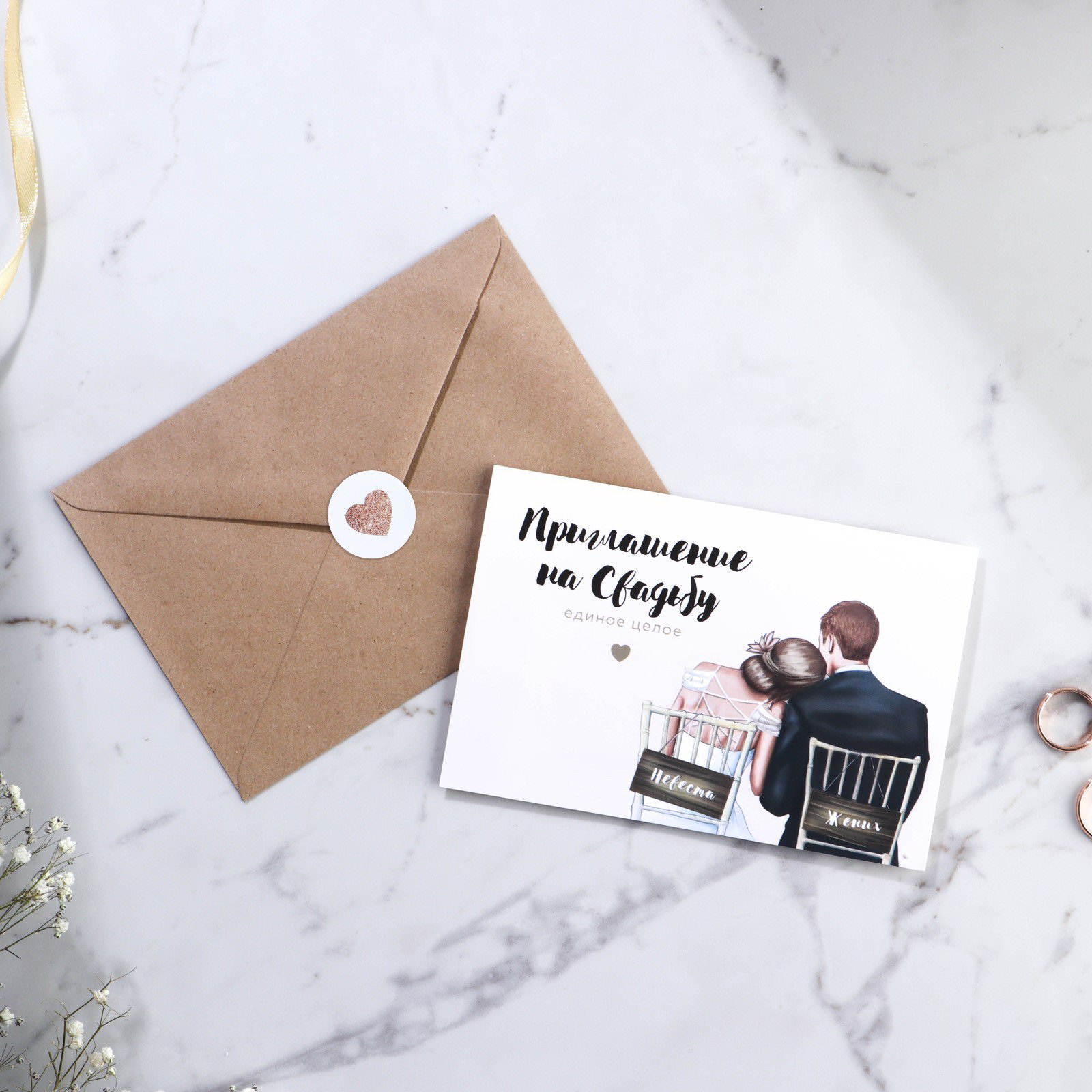 Приглашение в крафтовом конверте на свадьбу "Влюбленные-единое целое", 10 x 15 см, 15x10x0.1 см., Долго и счастливо, Россия