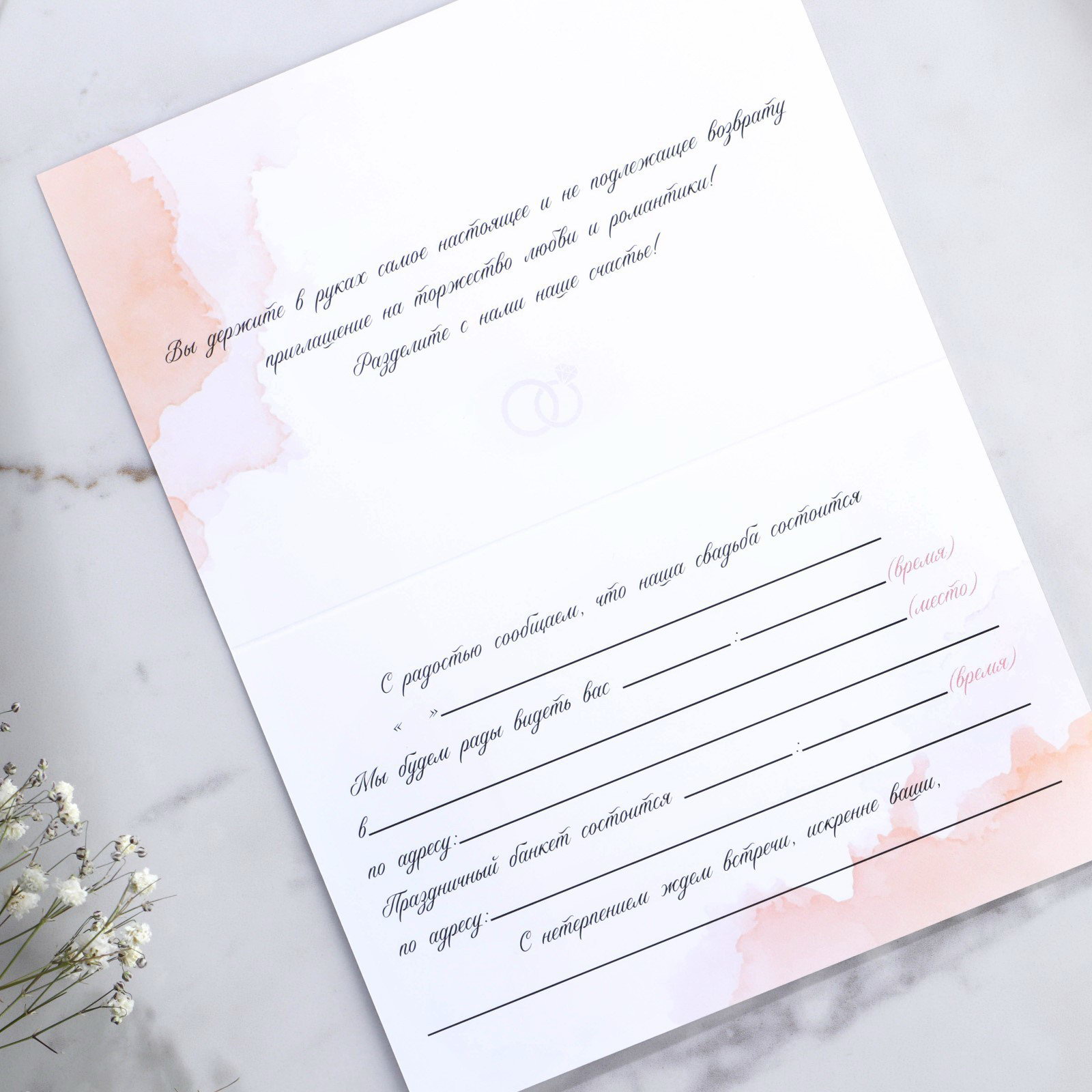 Размер упаковки: 20 x 0.8 x 15 см. tnved: 4909000000 Размер, см: 10 x 15 Тематика праздника: Свадьба Цвет: Бежевый Плотность, г/?2: 250 Отделка: Без отделки Когда дата и время бракосочетания уже известны, и вы определились со списком гостей, необходимо оповестить их о предстоящем празднике. Существует традиция делать персональные приглашения с указанием времени и даты мероприятия. Но перед свадьбой столько всего надо успеть, что на изготовление десятков открыток просто не остаётся времени. В этом случае вам придёт на помощь уникальное приглашение. Изделие выполнено из картона плотностью 250 грамм и дополненено крафтовым конвертом с наклейкой из самоклеющейся бумаги.. Это придаёт дорогой и роскошный вид. Текст приглашения содержит свободные поля для имени адресата, времени, даты и адреса проведения мероприятия. Это потрясающее приглашение достойно стать частью такого важного события в жизни, как свадьба! | ||