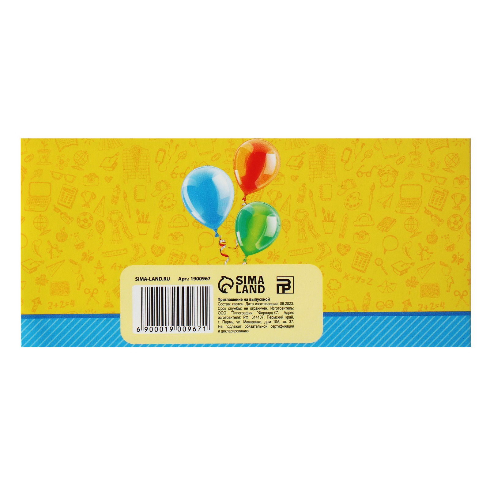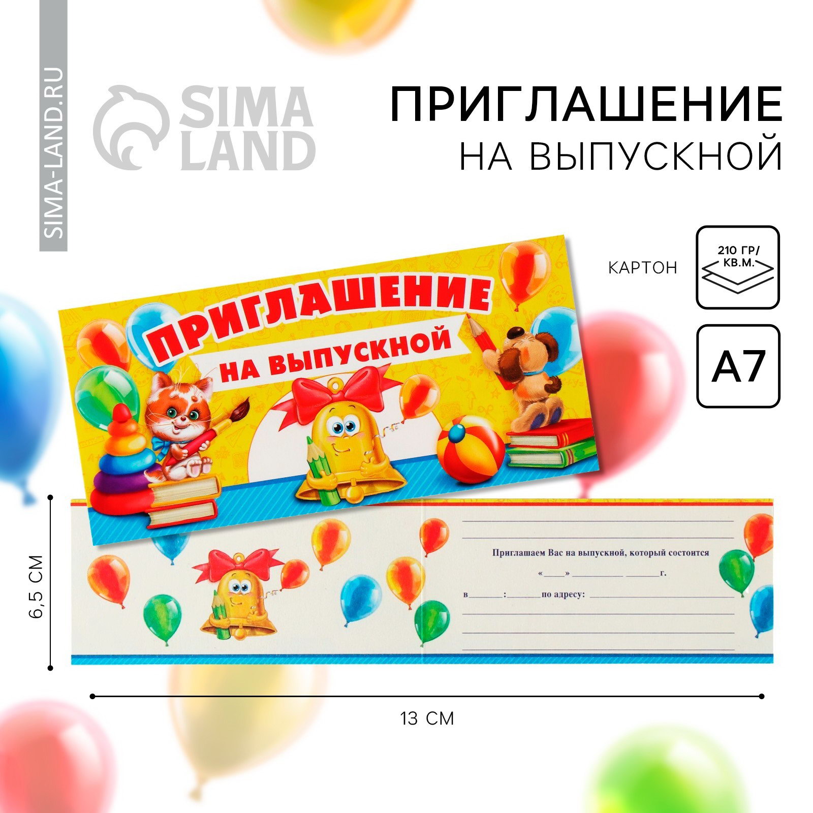 Приглашение на выпускной, 13 x 6.5 см, 0.1x13.75x6.5 см., Сима-ленд, Россия