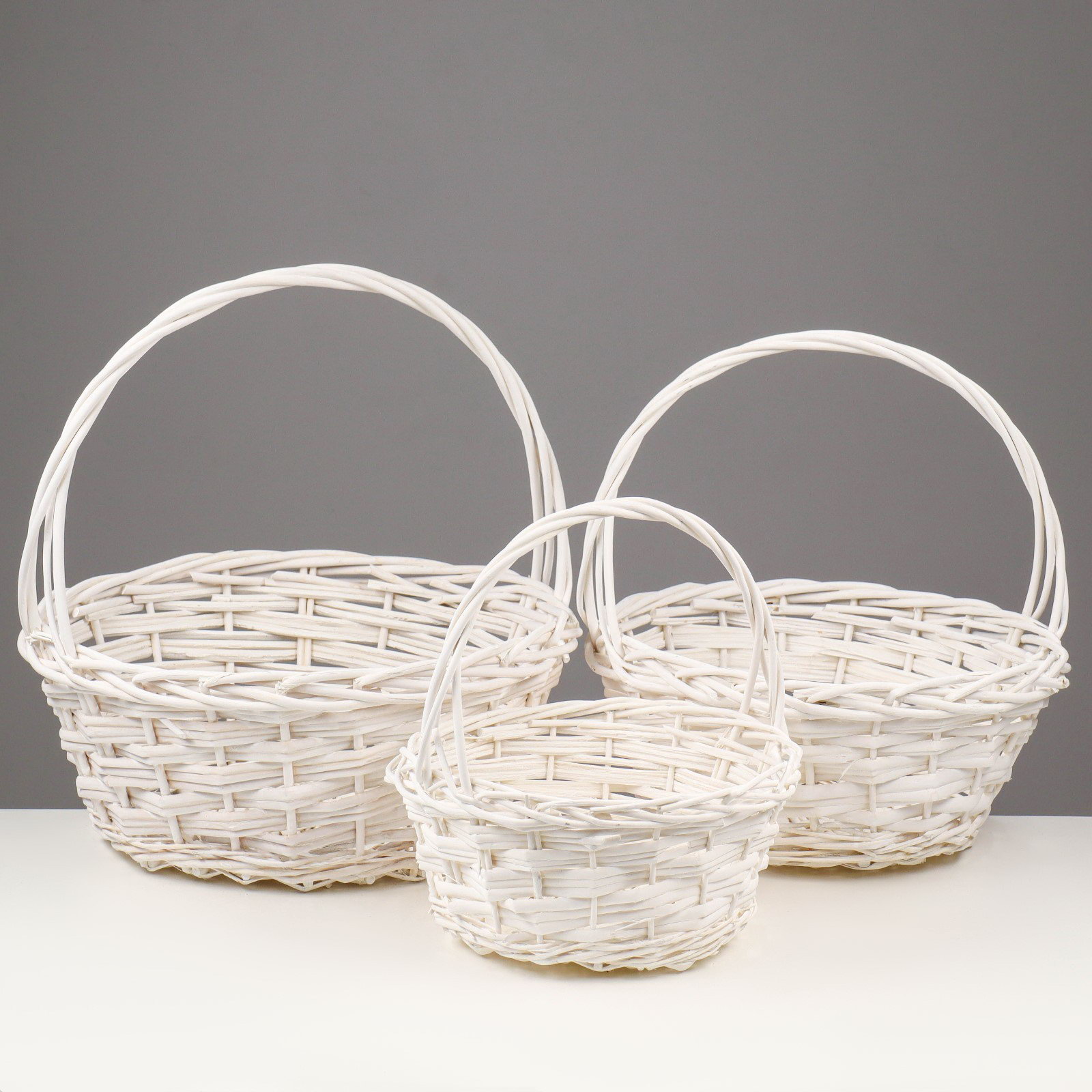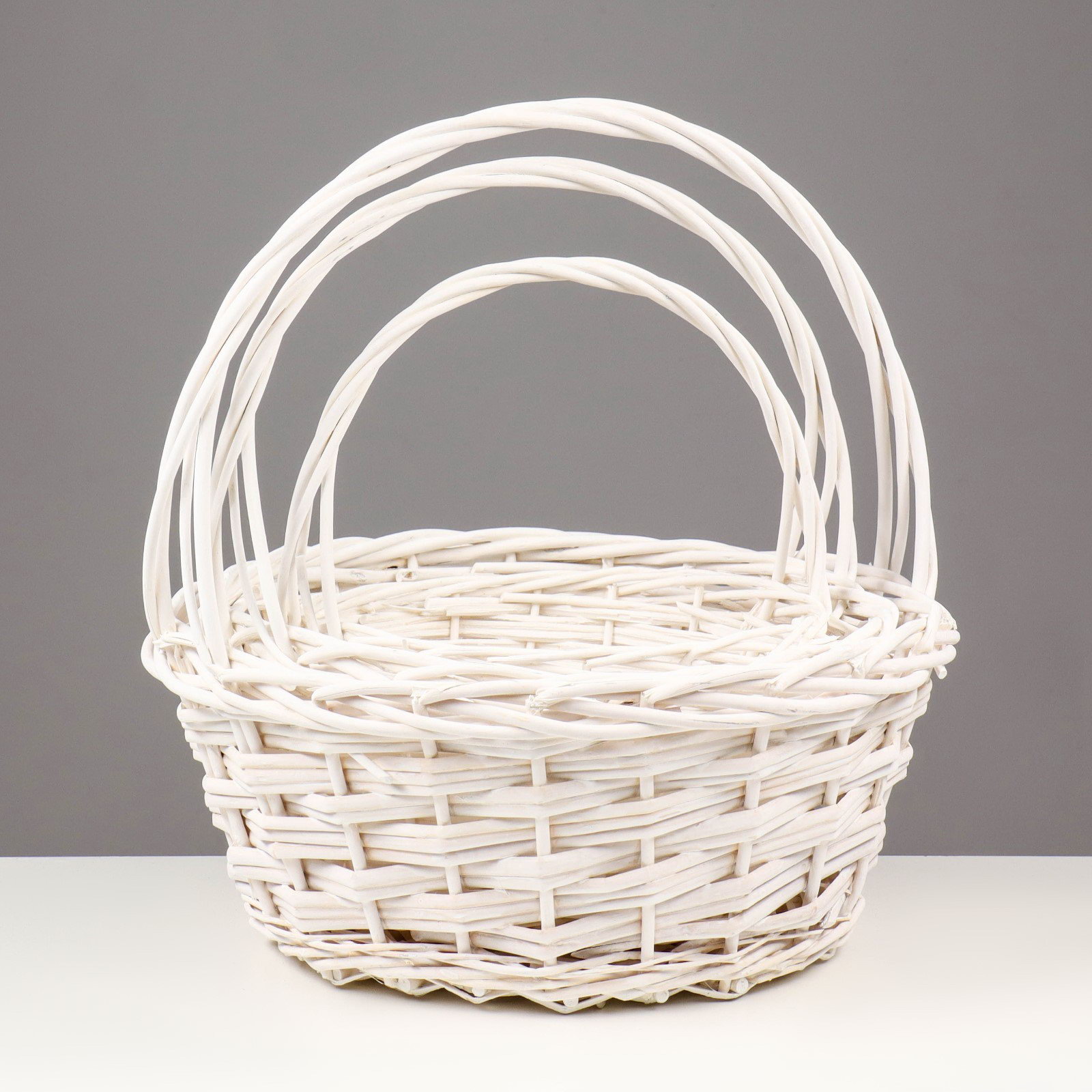 Корзина плетёная для хранения Vanuatu, ива, круглая, белая, набор 3 шт., Китай
