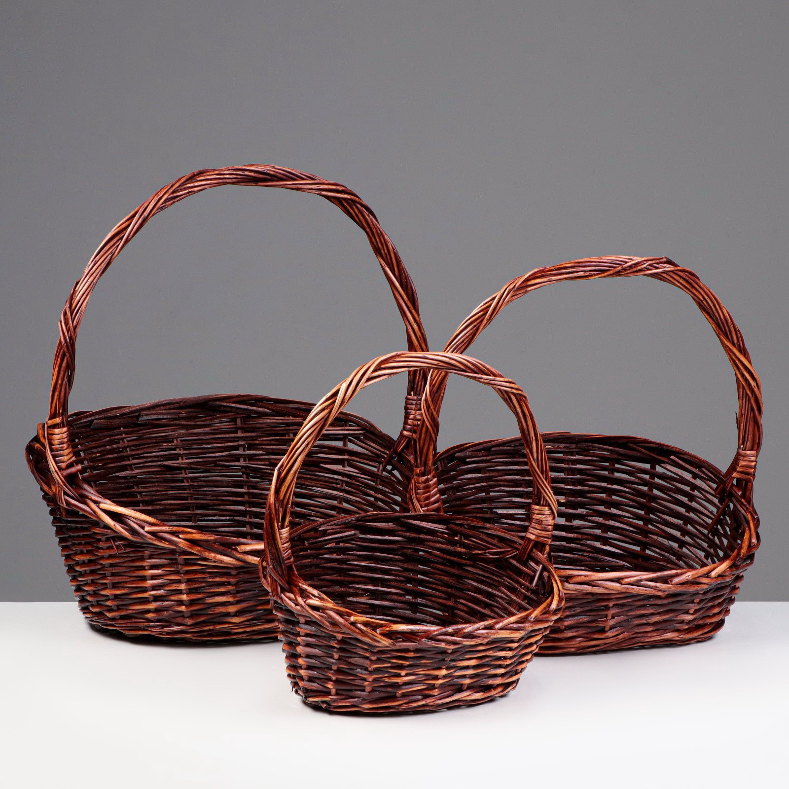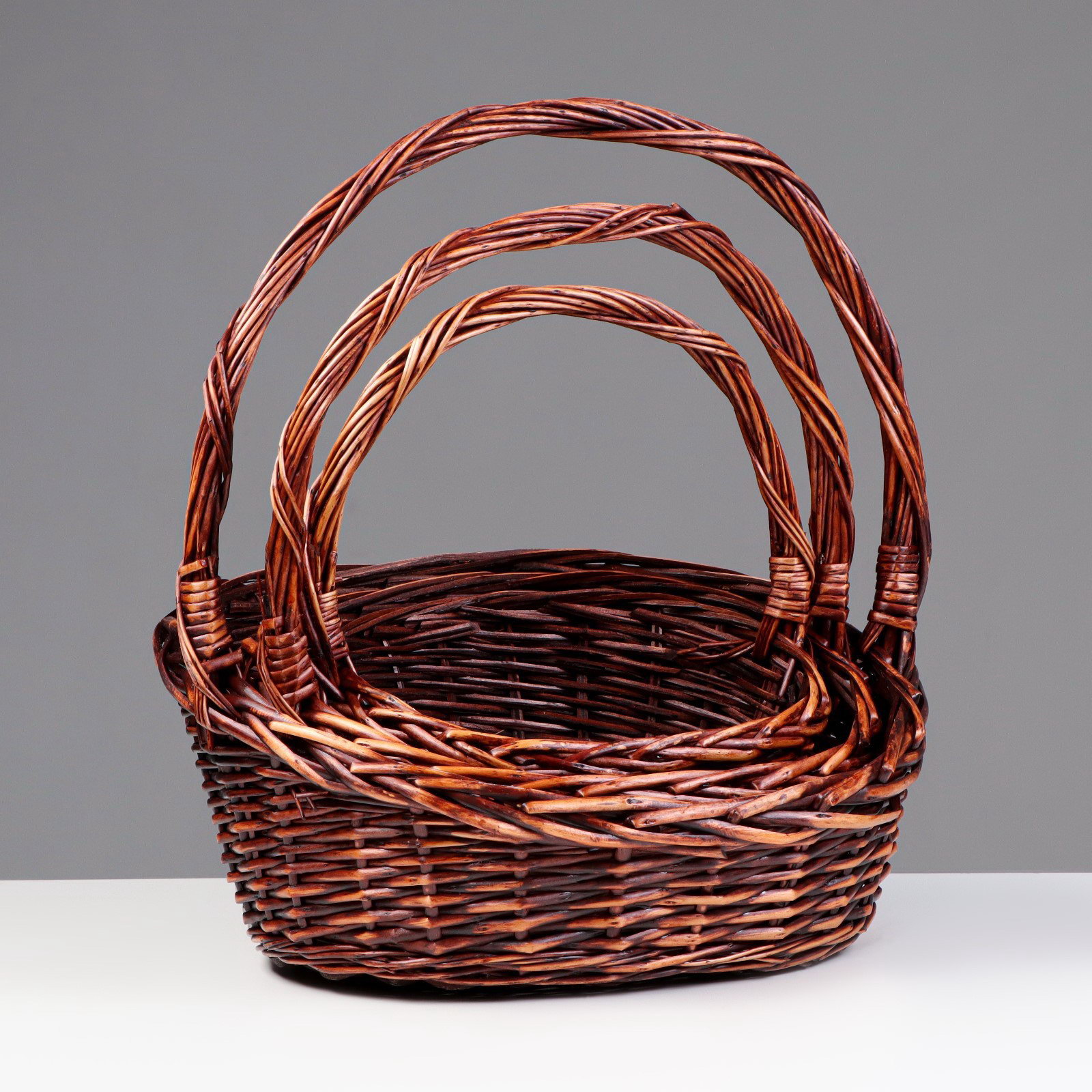 Корзина плетёная для хранения, ива, овальная, тёмная, набор 3 шт., Китай
