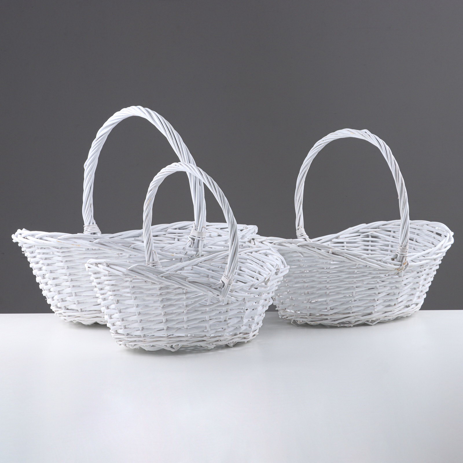 Набор корзин, 3 шт, 50x37xH16/40 см, 41x31x13/34 см, 34x24x12/29 см, белый, лоза, Китай