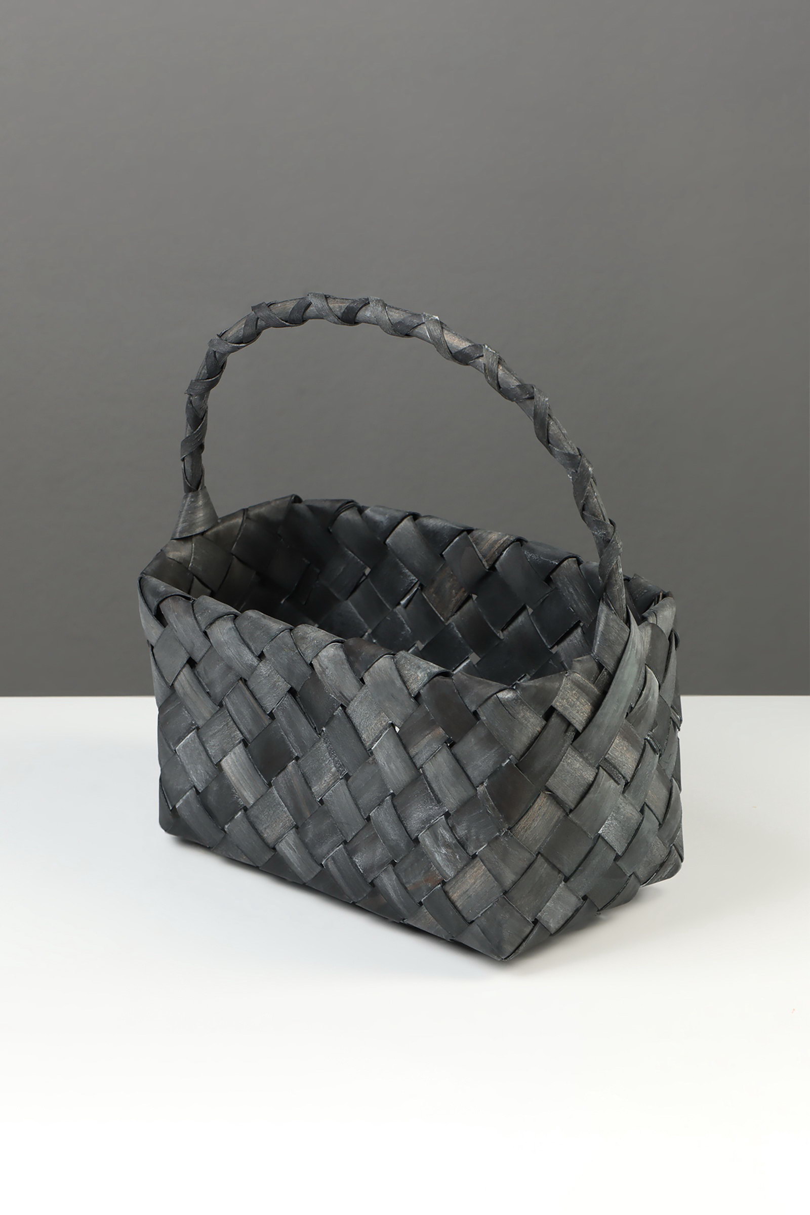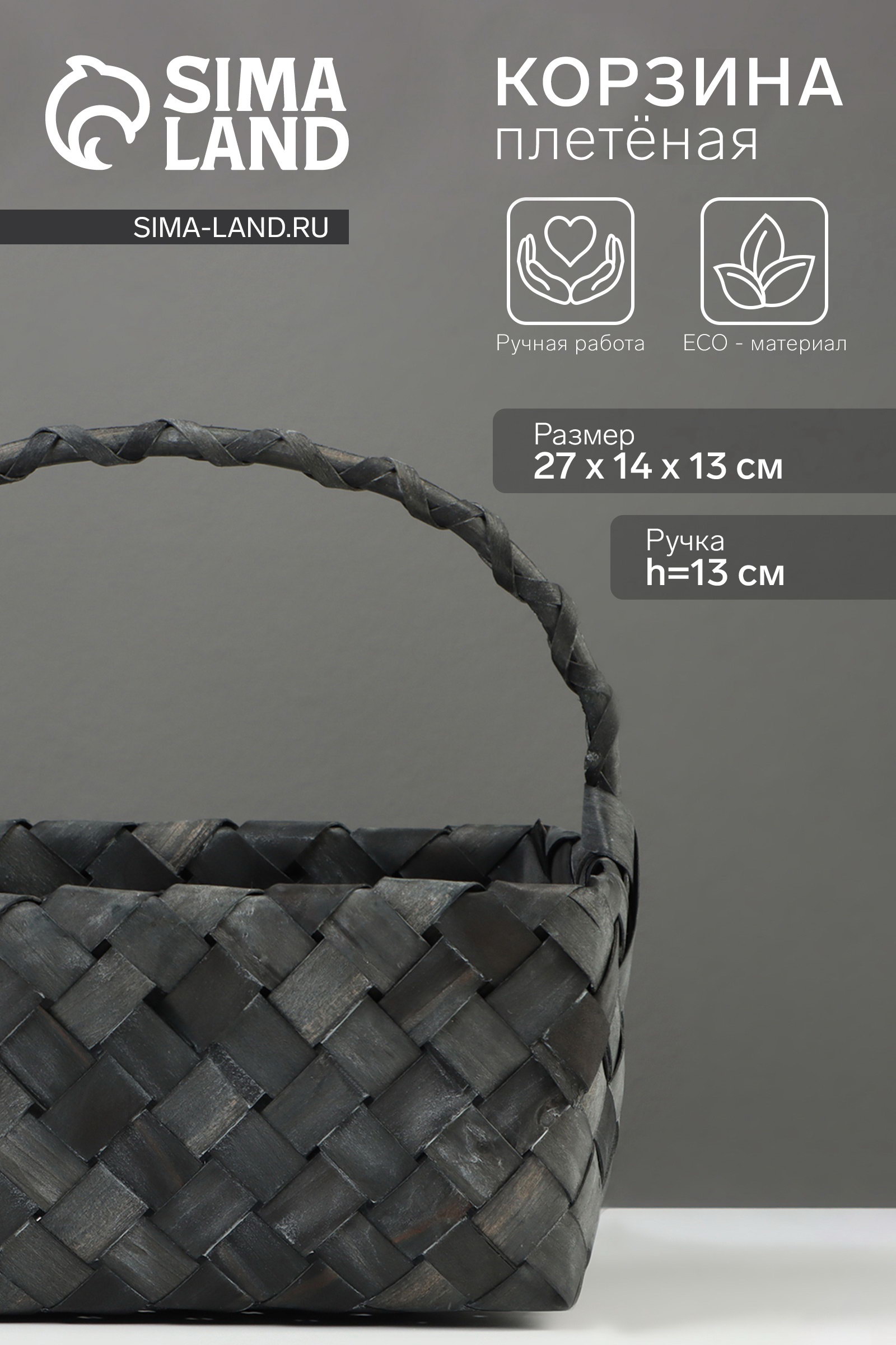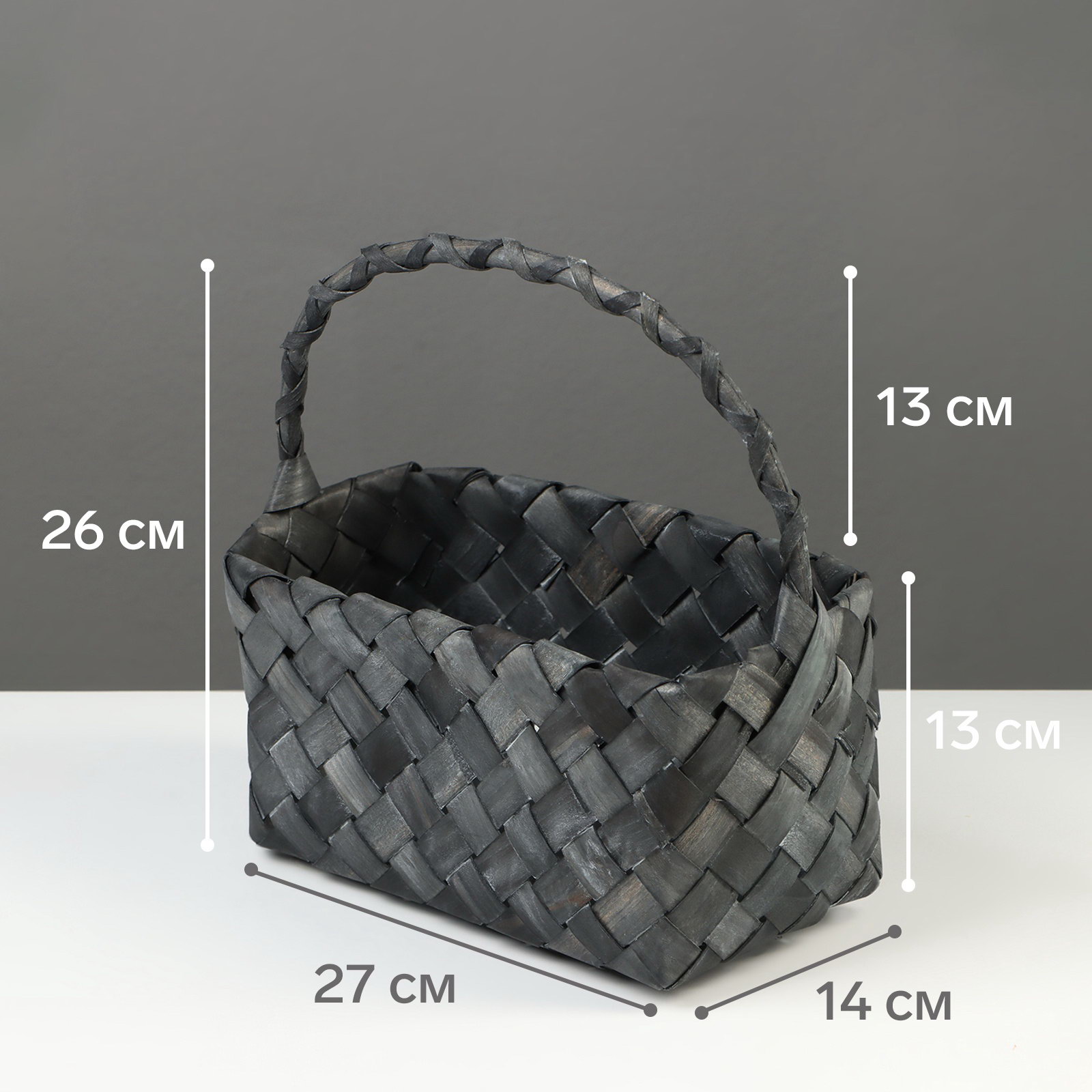 Корзина плетёная для хранения, 27x14x13 см, плетёная ручка h=13 см, ива, серая, Китай