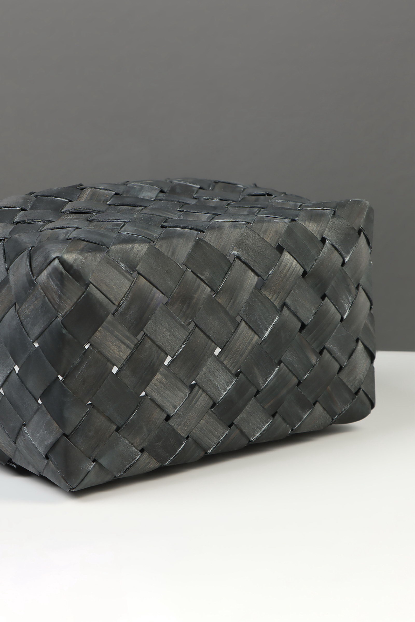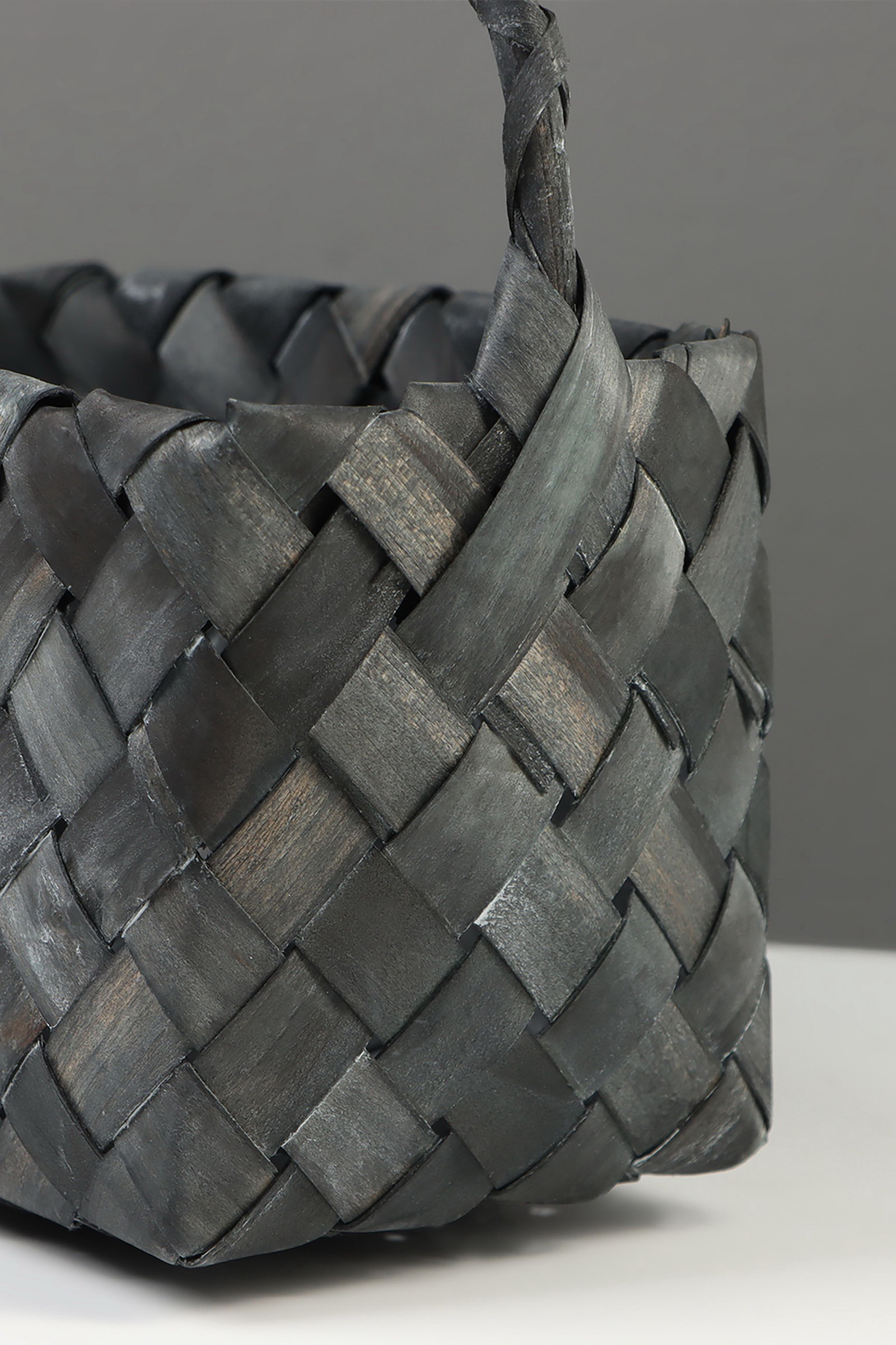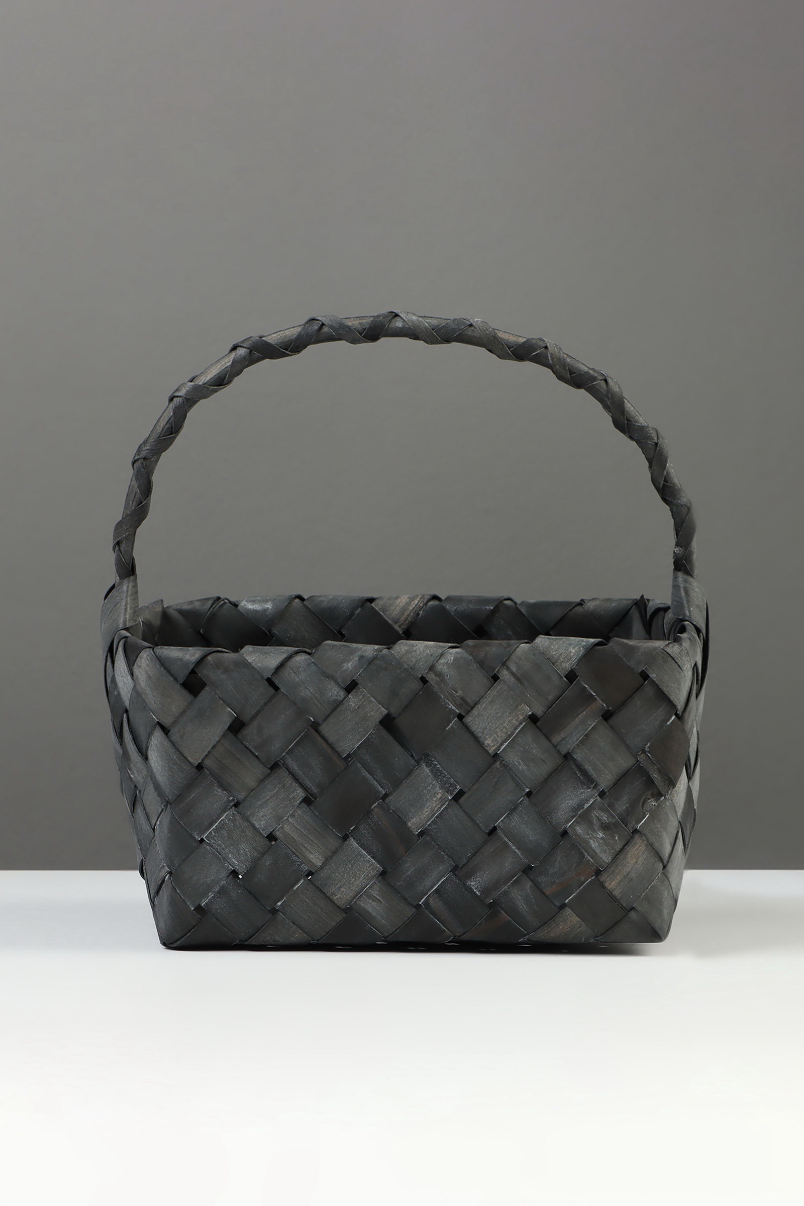 Корзина плетёная для хранения, 27x14x13 см, плетёная ручка h=13 см, ива, серая, Китай