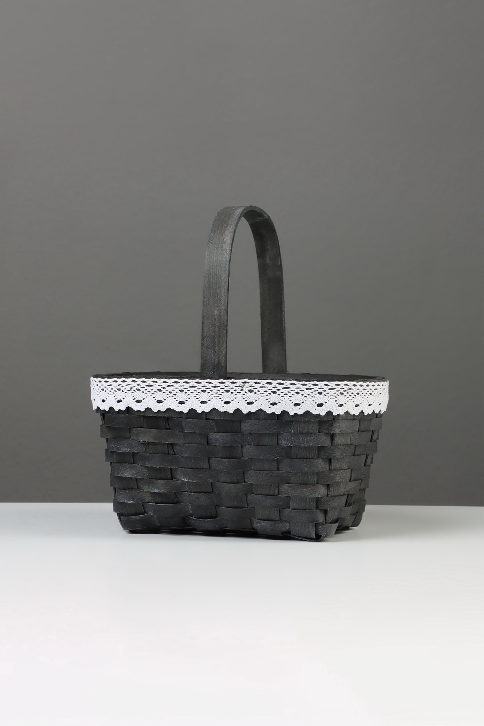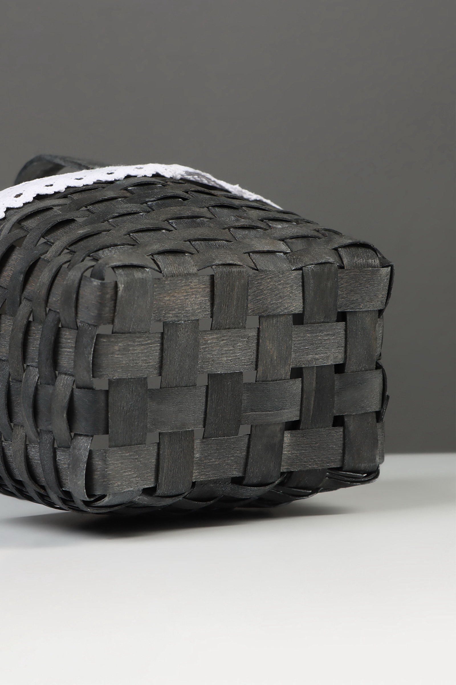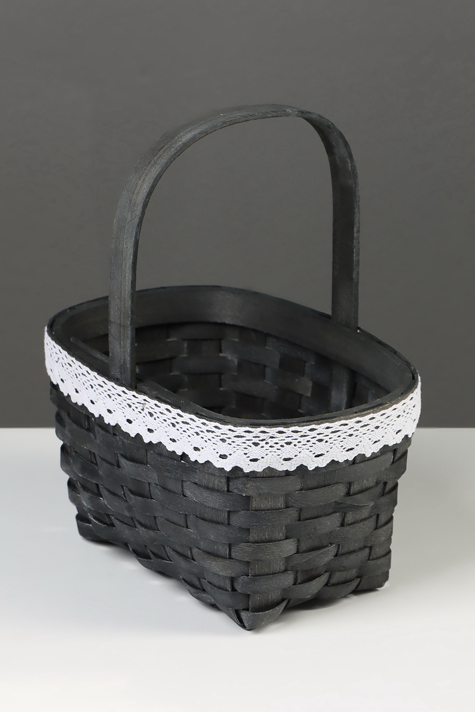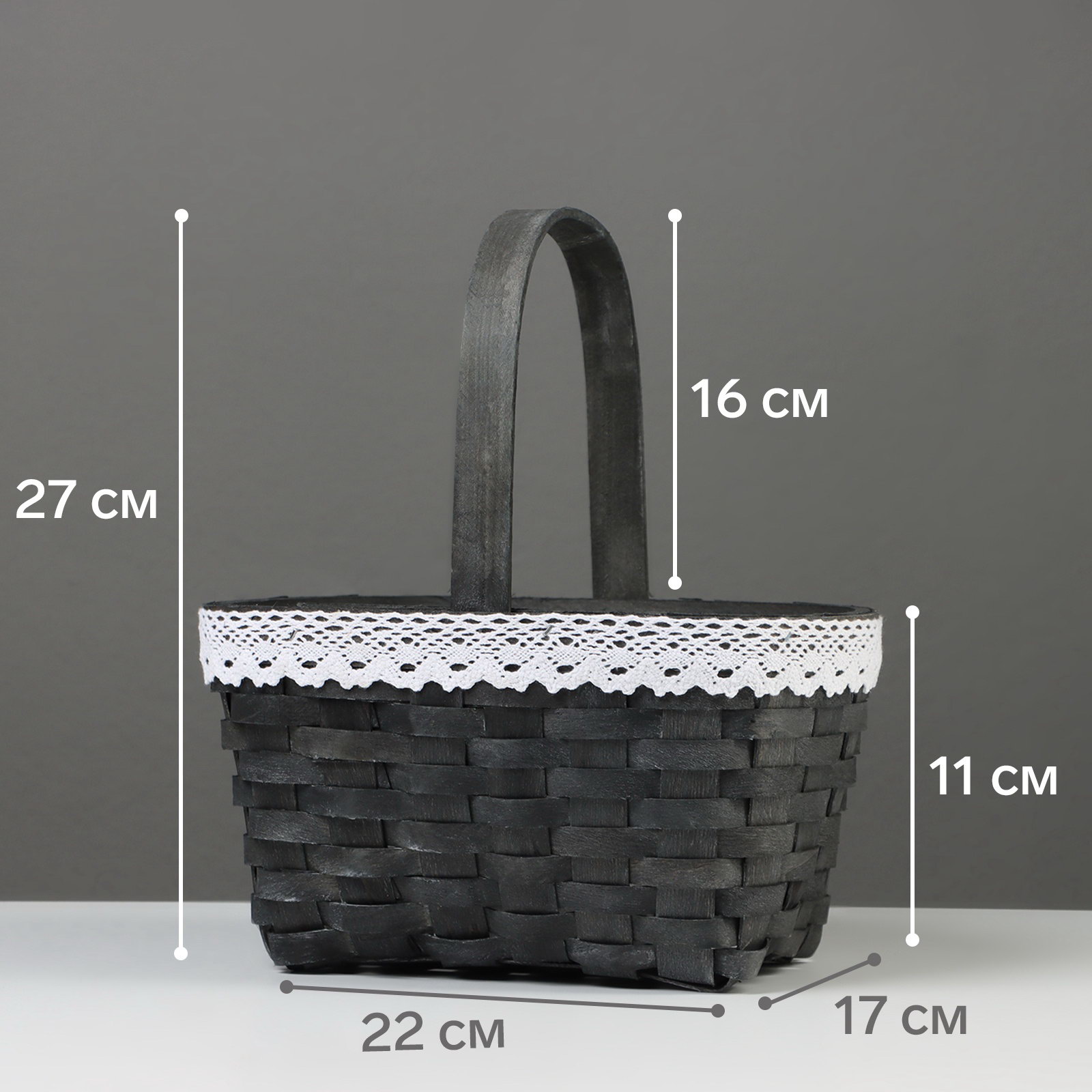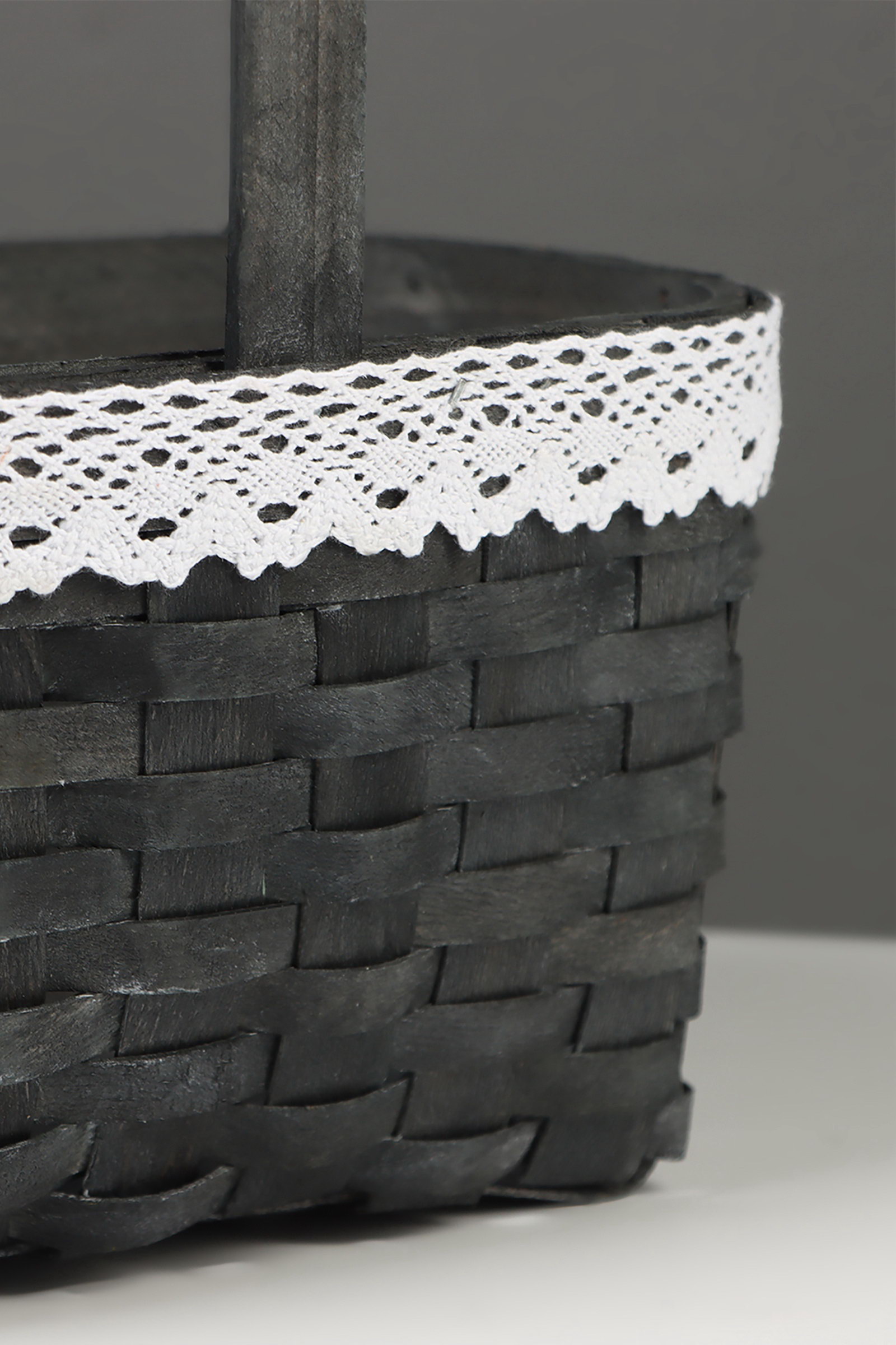 Корзина плетёная для хранения, 22x17x11 см, ручка h=16 см, ива, с кружевом, серая, Китай