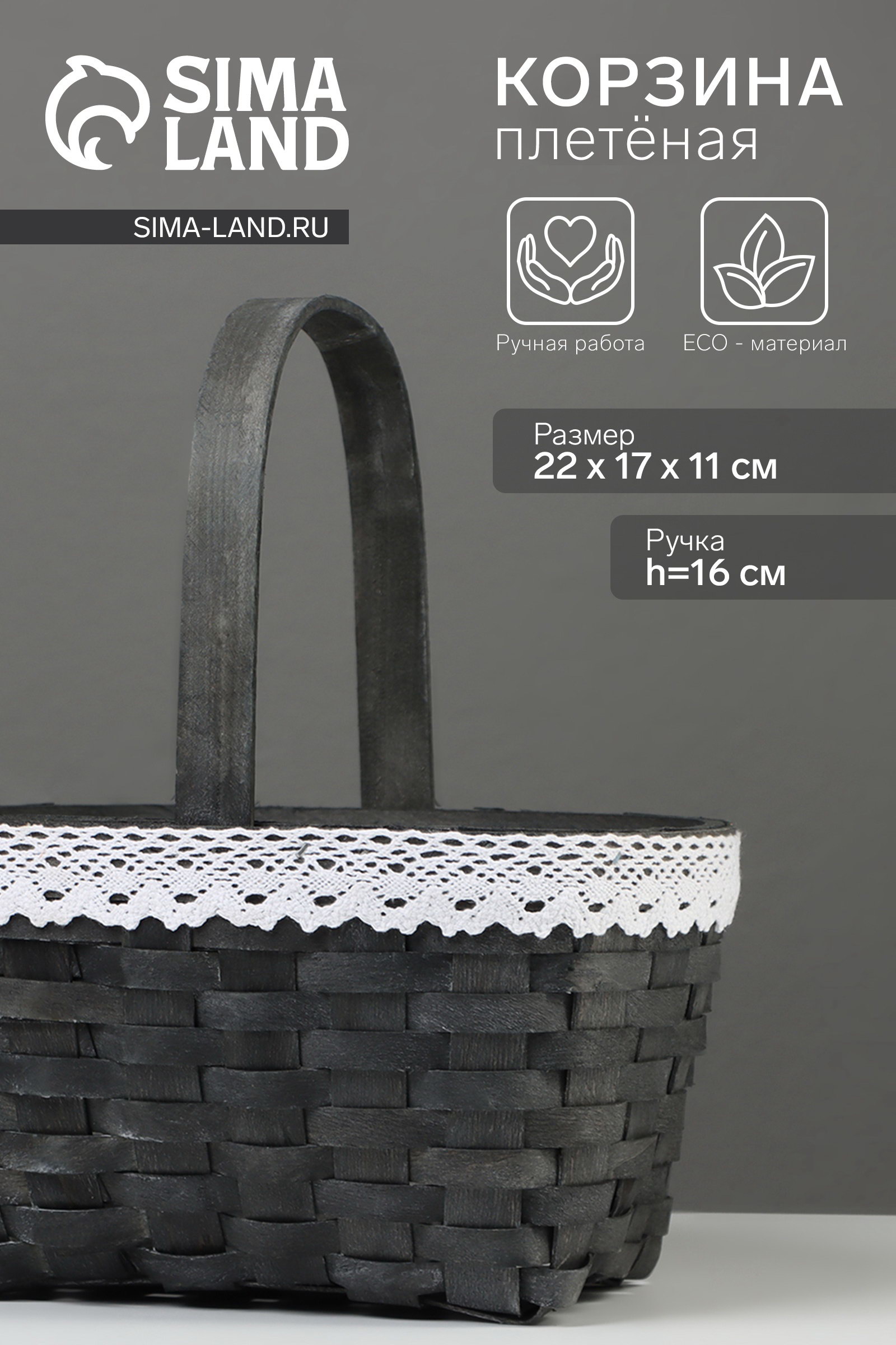 Размер упаковки: 12 x 17 x 23 см. Форма: Прямоугольная Набор: Нет Цвет: Серый В наборе, шт.: 1 Высота без ручки, см: 11 Высота с ручкой, см: 27 tnved: 4602199000 Ширина, см: 17 Длина, см: 22 Крышка: Нет Дизайн: Однотонный Плетёная корзина из ивы с кружевом это изящный аксессуар для декоративного хранения. Сочетание натурального плетения и ажурного узора создаёт в интерьере атмосферу утончённости.