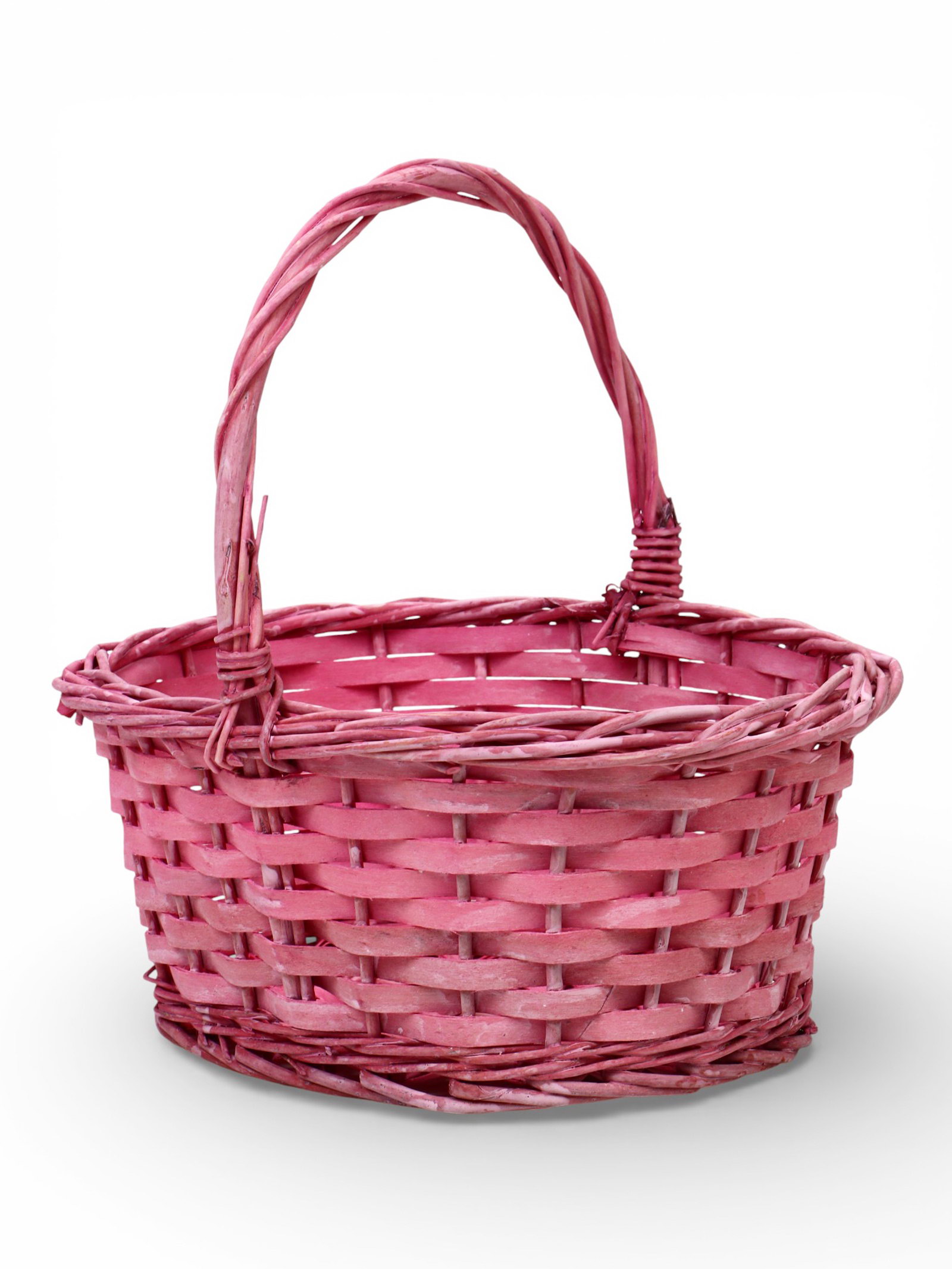 Корзина плетеная ива 28 x 20 x 11 см ручка 14 см, розовый, 20x28x25 см., Greengo, Китай
