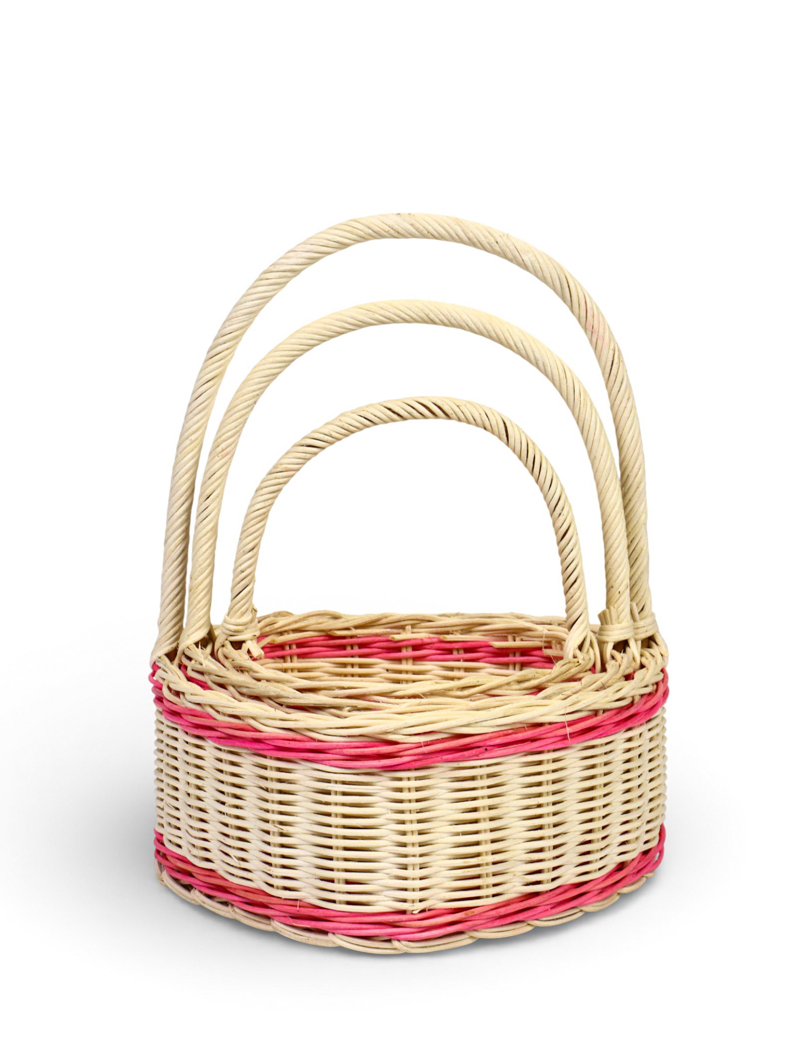 Корзина плетёная, в форме сердечка, набор 3 шт., лоза, кукуруза, с розовой полоской, Вьетнам