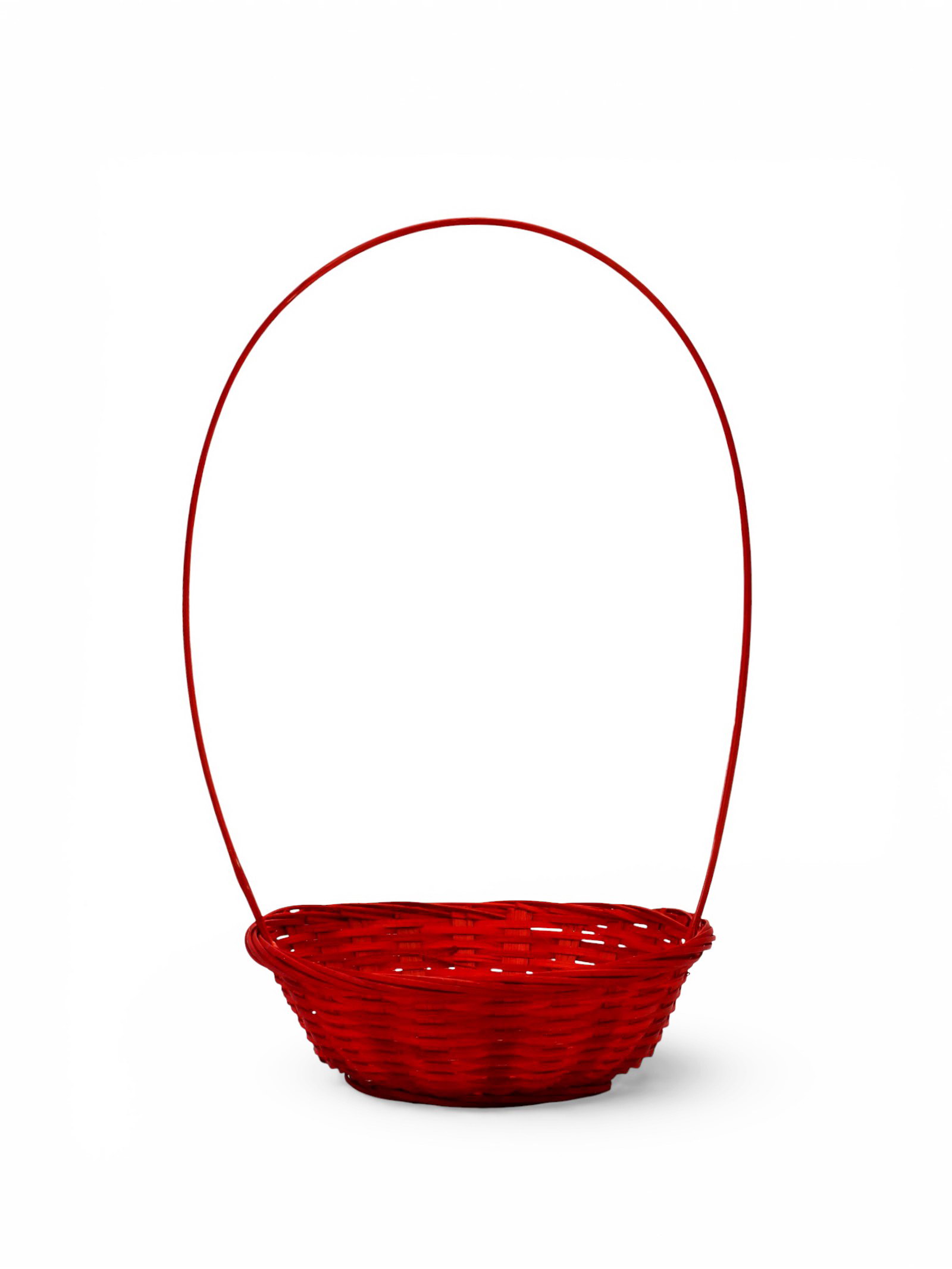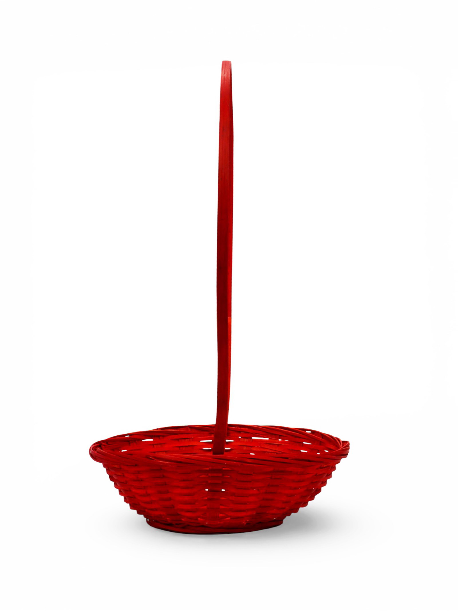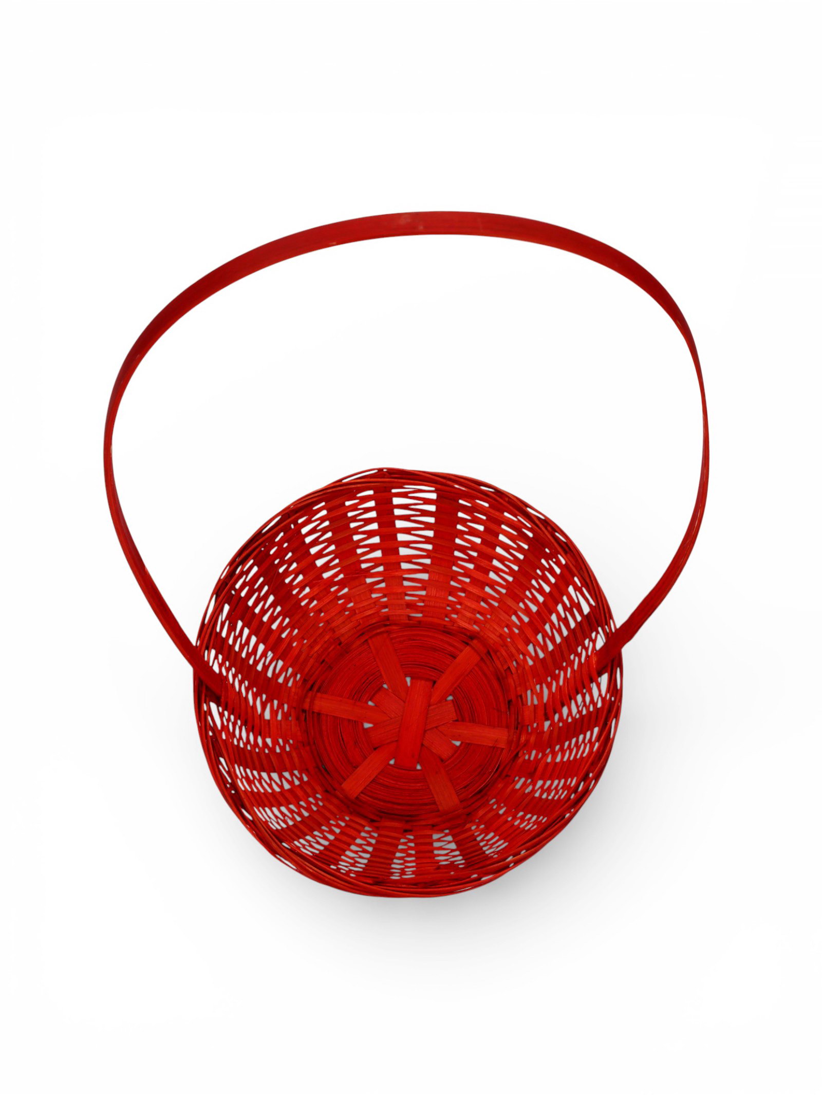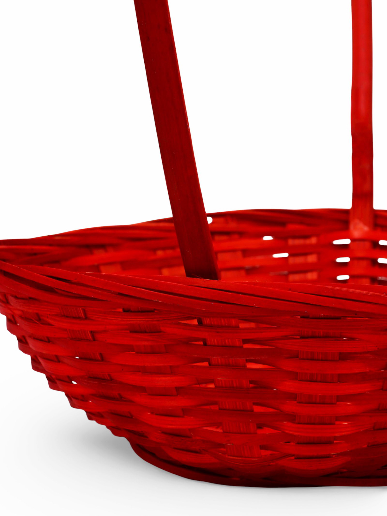 Корзина плетёная для хранения, 20x20x8 см, ручка h=21 см, бамбуковая, красный, 12x26 см., Greengo, Китай