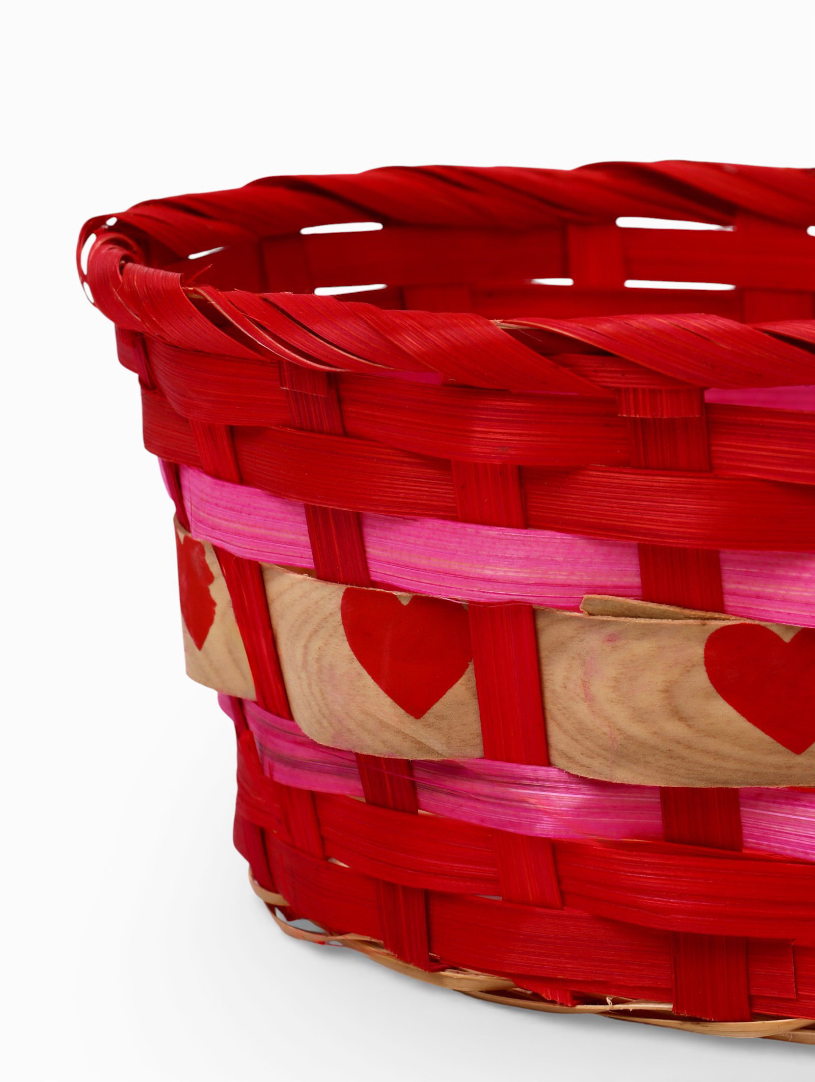 Корзина плетёная для хранения "Сердечки", 25x20x10 см, бамбуковая, красная, 20x25x10 см., Greengo, Китай