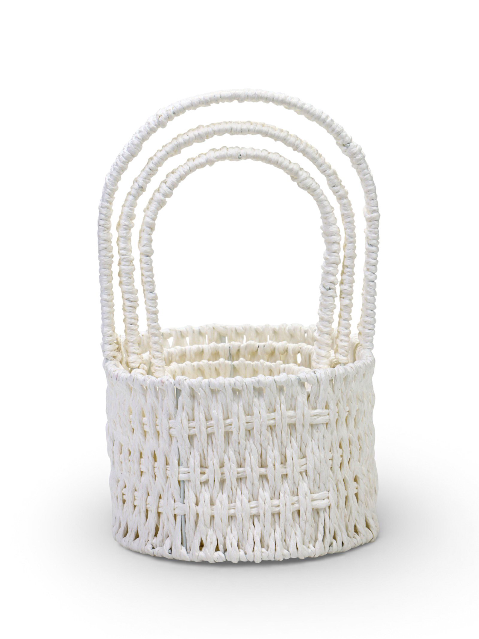 Корзина плетёная для хранения Kos, с ручкой, пластиковая, белая, набор 3 шт., 17x25x20 см., Greengo, Китай