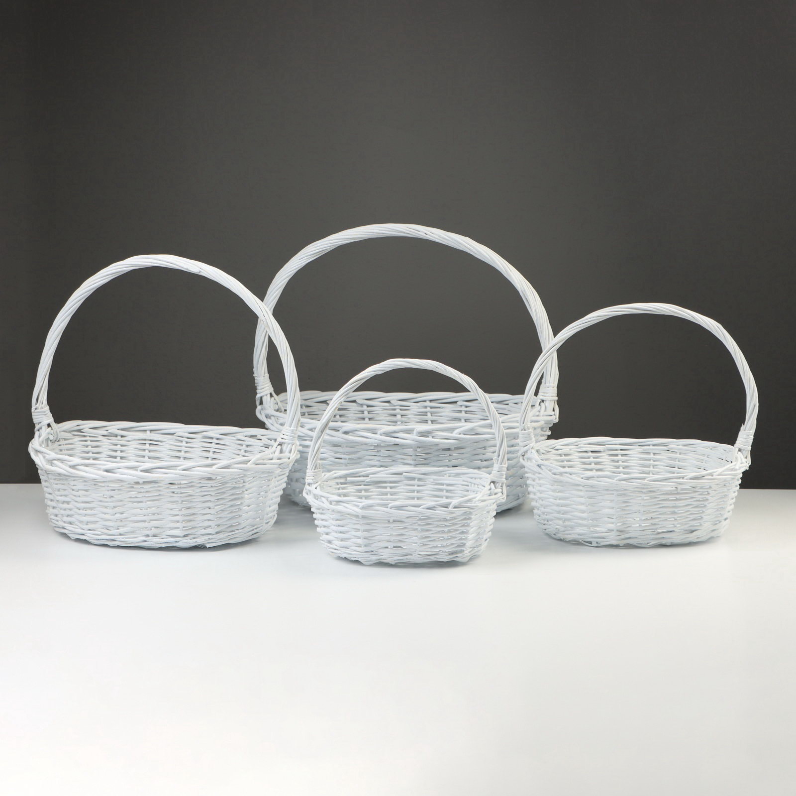 Корзина плетёная для хранения, ива, овальная, с ручкой, белая, набор 4 шт., Китай