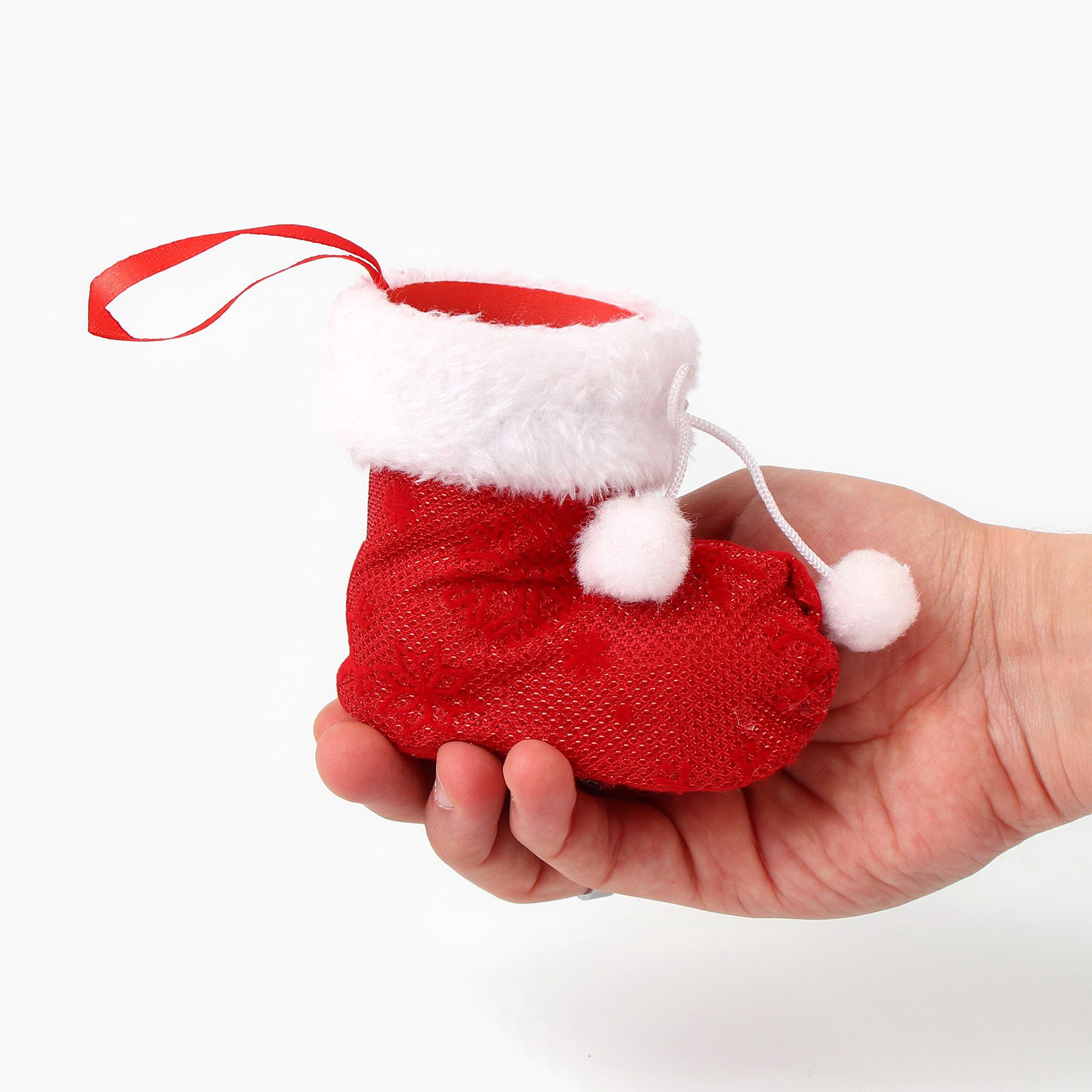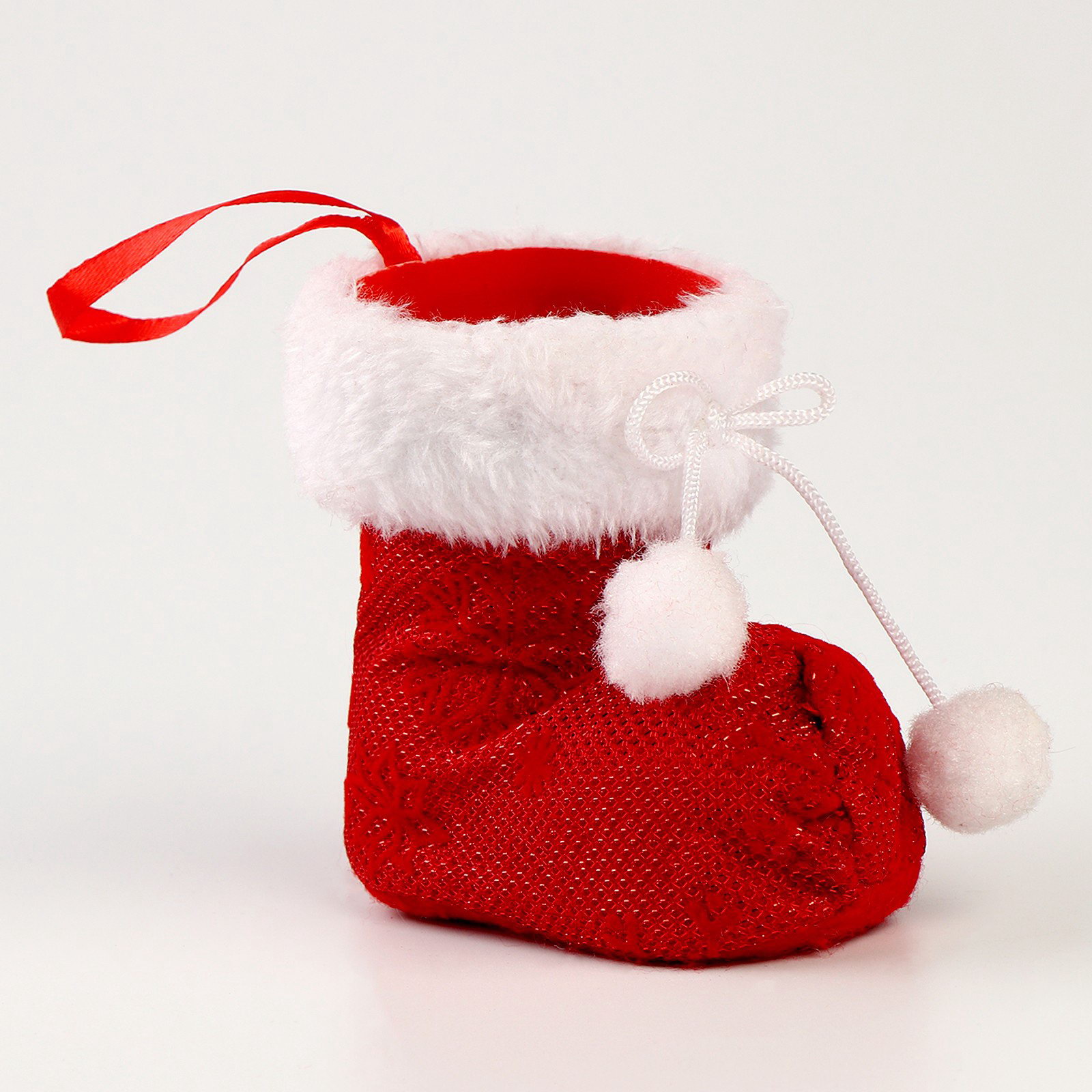 Размер упаковки: 10 x 6 x 10 см. Символ года: Нет Форма игрушки: Сапожок Персонаж: Снежинка Цвет: Красный Крышка: Нет Крышка: Нет tnved: 3923900000 Тематика праздника: Новый год Размер, см: 10 x 5 Форма: Фигурная Стиль: Советский Сапожок с бантиком и помпонами это стильный и функциональный аксессуар, который станет украшением новогоднего стола или интерьера. Его яркий красный цвет и оригинальная форма добавляют атмосферы праздника и уюта. Особенности