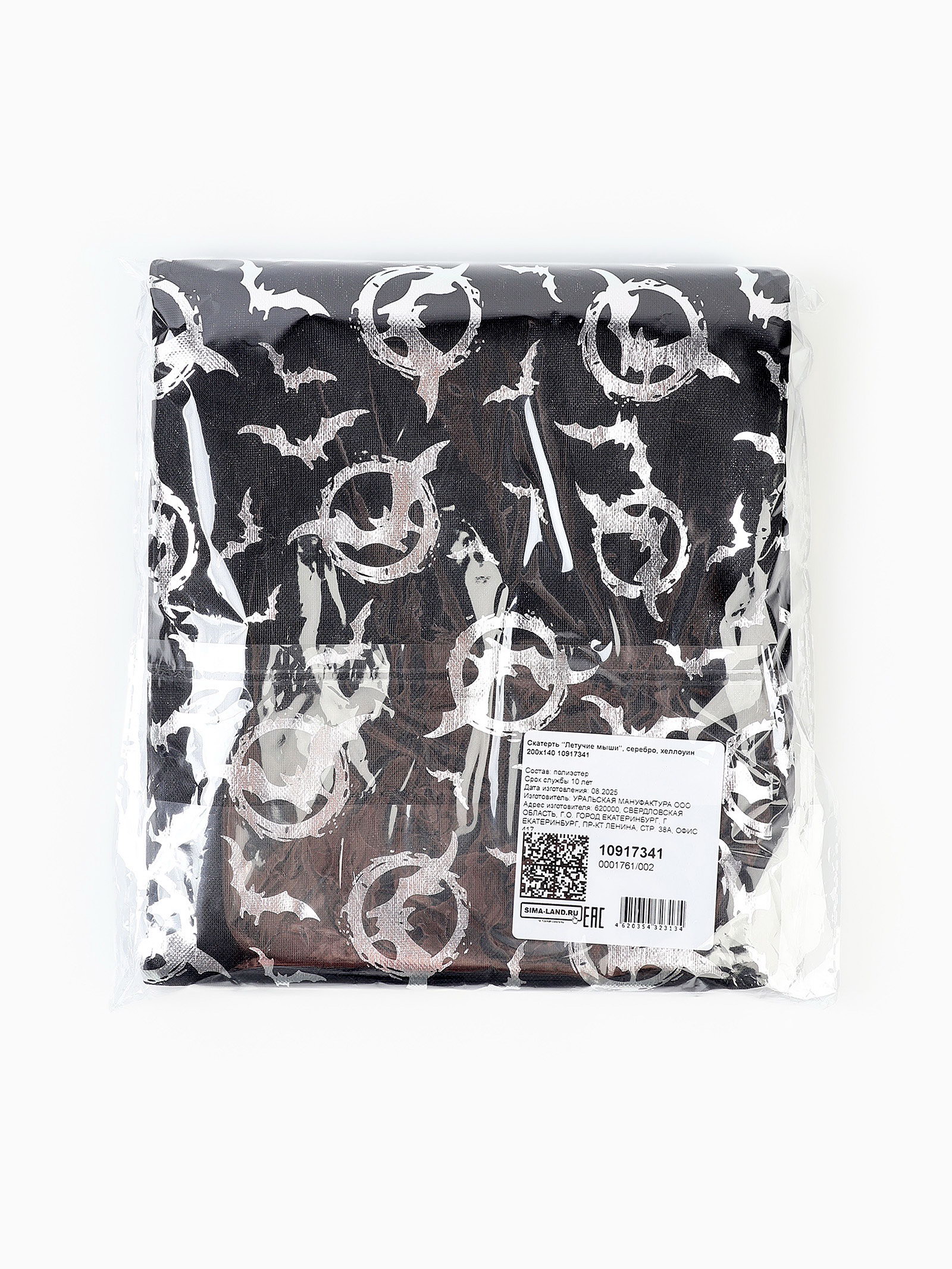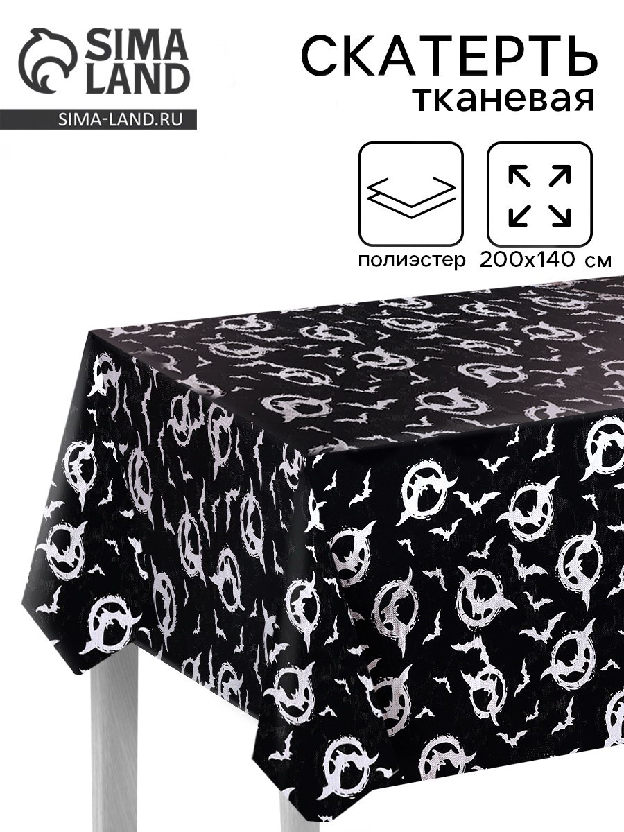 Скатерть на хэллоуин "Летучие мыши", серебро, 200 x 140, Россия