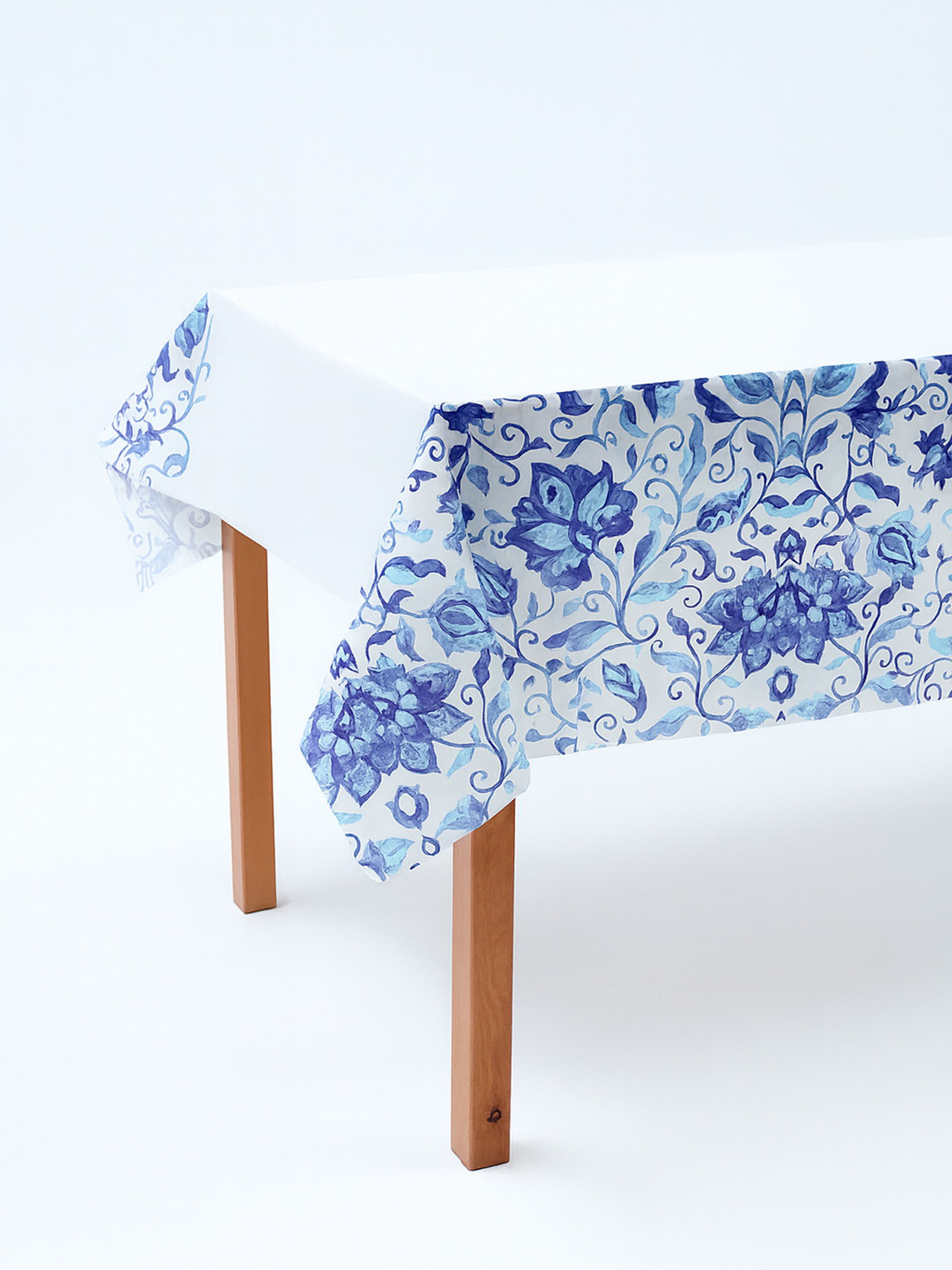 Скатерть одноразовая "Синие Узоры", 130 x 180см, Страна Карнавалия, Китай