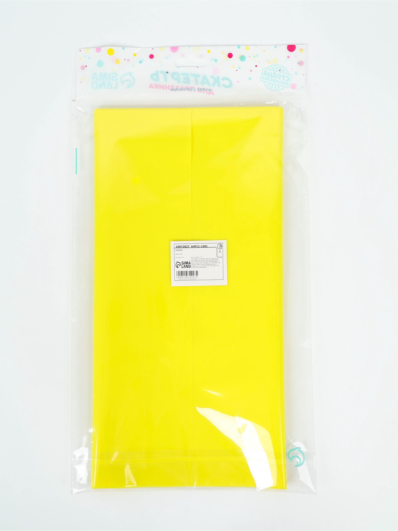 Скатерть одноразовая 137x183 см, флуоресцентная, жёлтая, 137x183x0.1 см., Страна Карнавалия, Китай