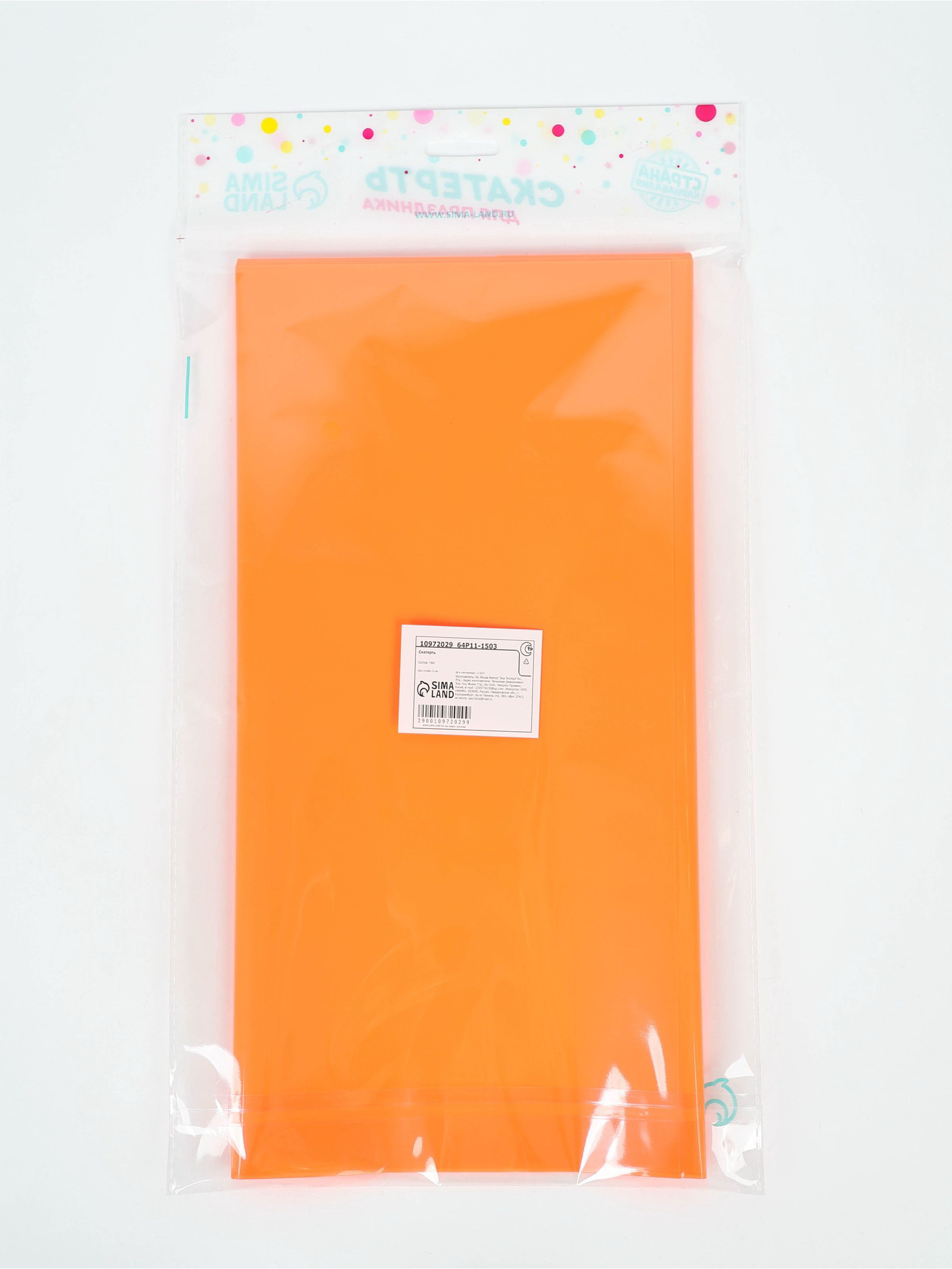 Скатерть одноразовая 137x183 см, флуоресцентная, оранжевая, 137x183x0.1 см., Страна Карнавалия, Китай