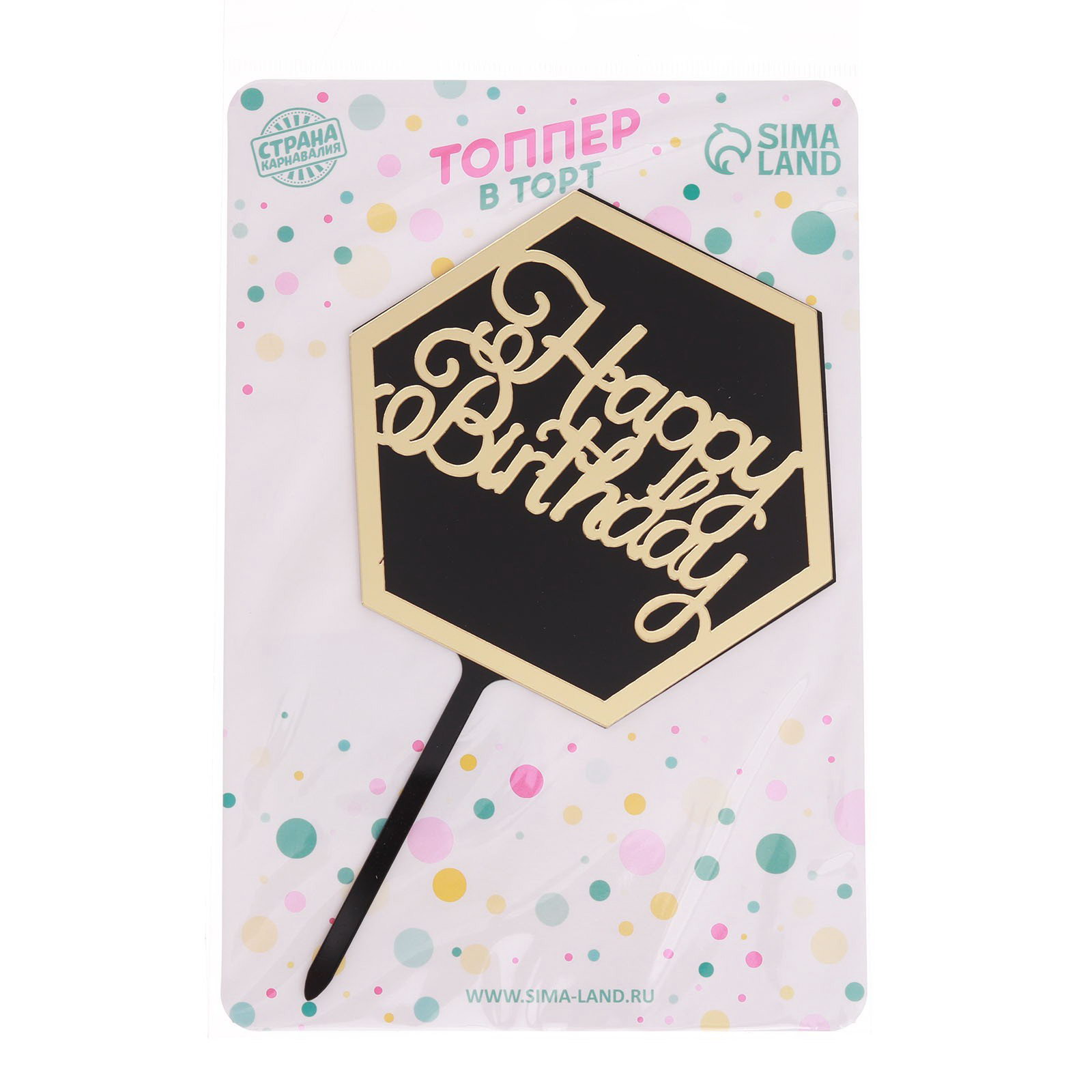 Топпер "С днём рождения", 10x16x0.3 см., Страна Карнавалия, Китай