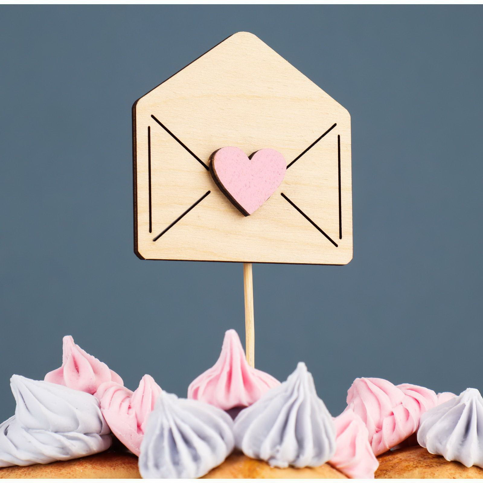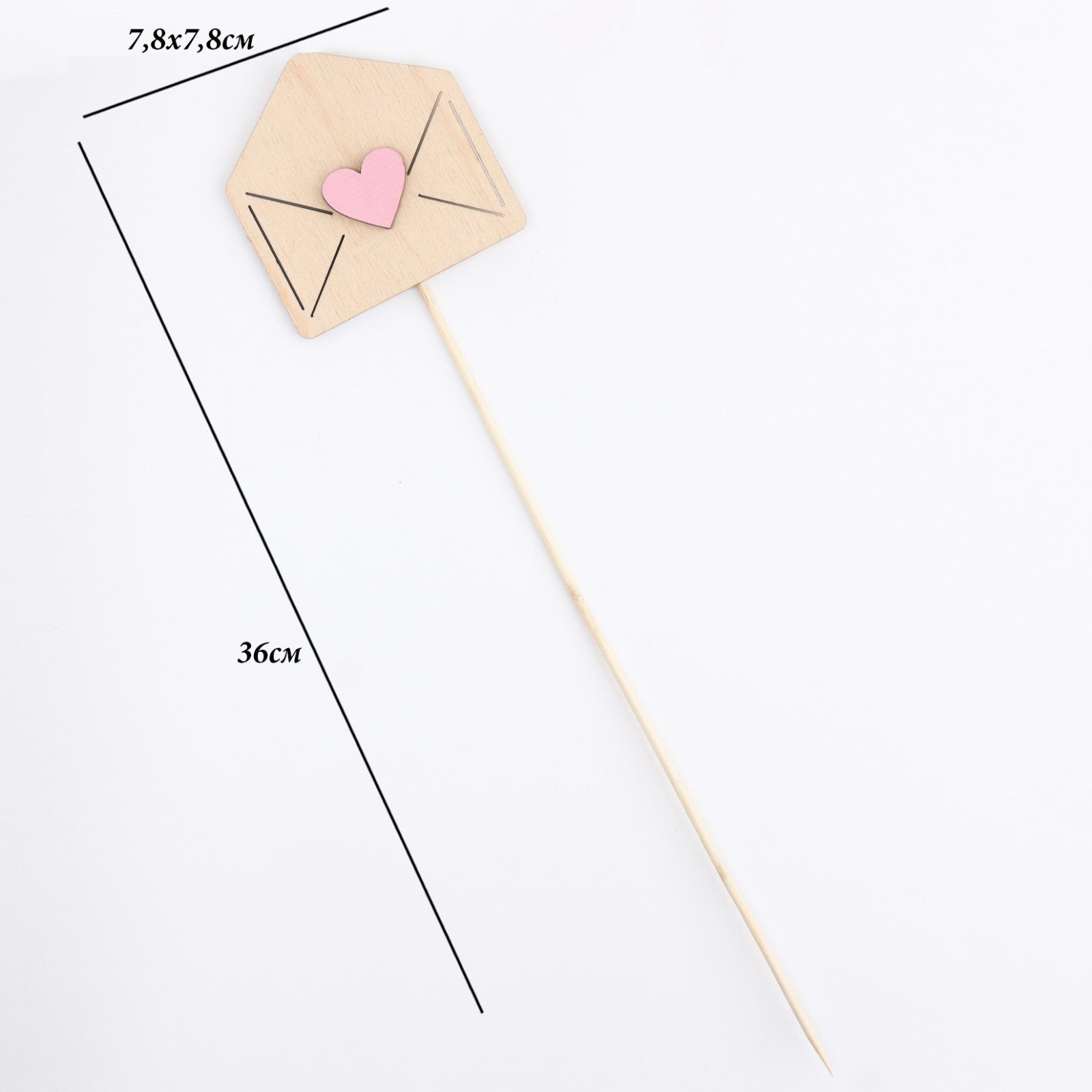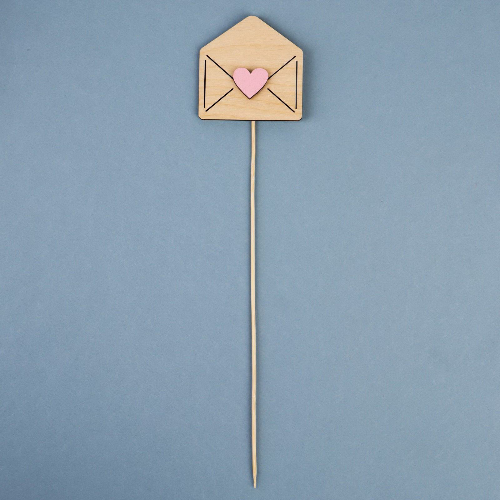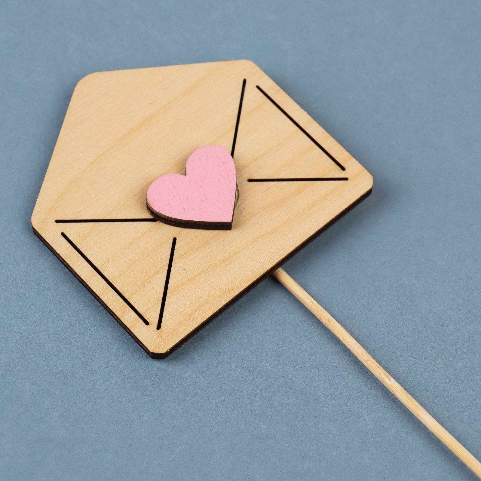 Топпер деревянный "Любовное послание" с аппликацией, розовый, 7.8х7.8 см, Дарим Красиво, Россия