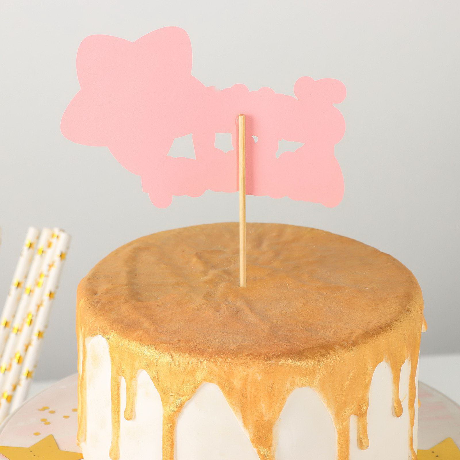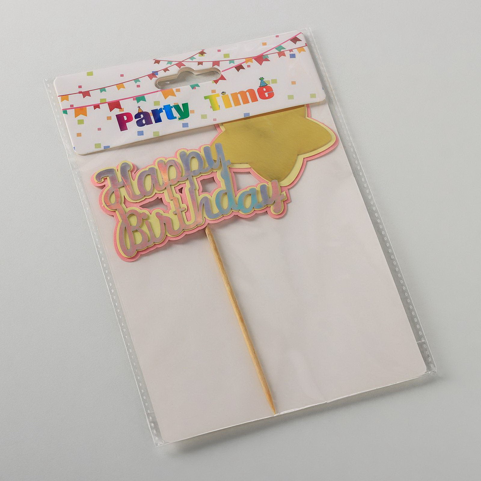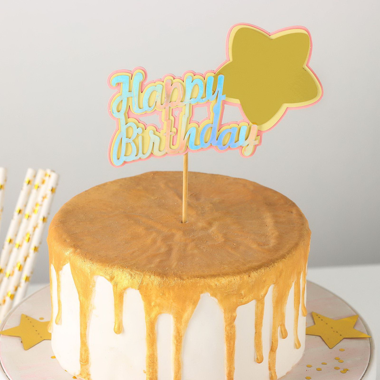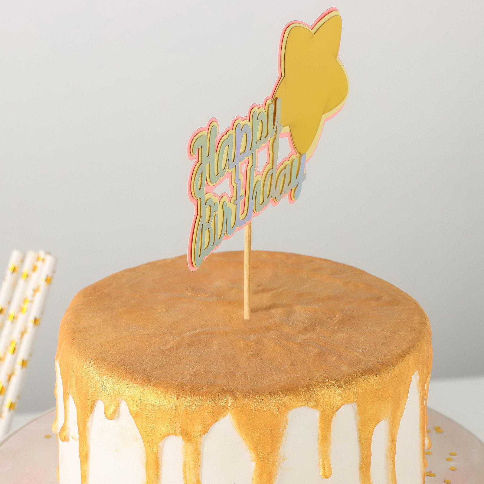 Топпер для торта "Счастливого дня рождения. Звезда", 18x12.5 см, цвет розово-золотой, 13x20x0.1 см., Китай