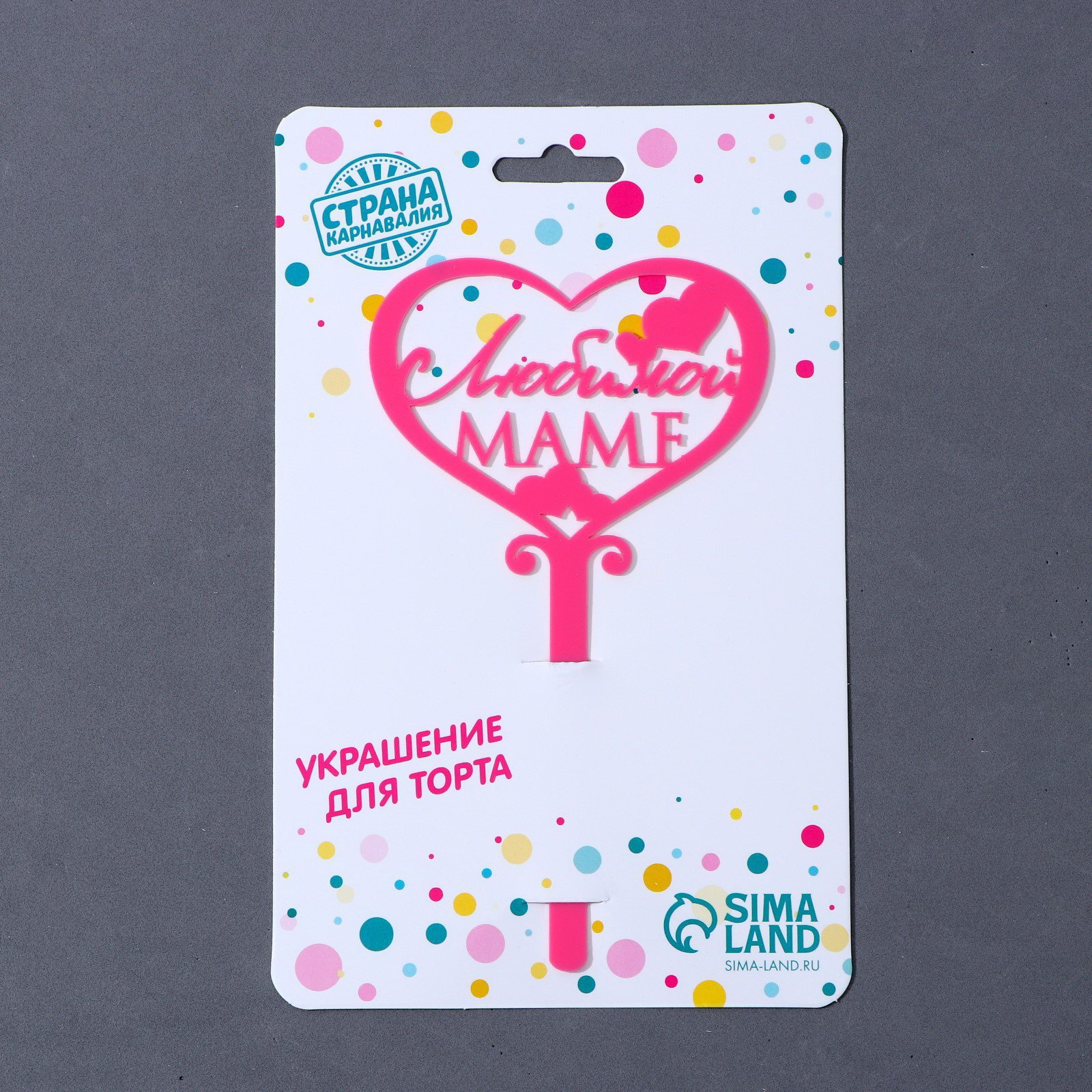 Топпер для торта "Любимой маме", 15 см, 0.3x8.4x15 см., Страна Карнавалия, Китай