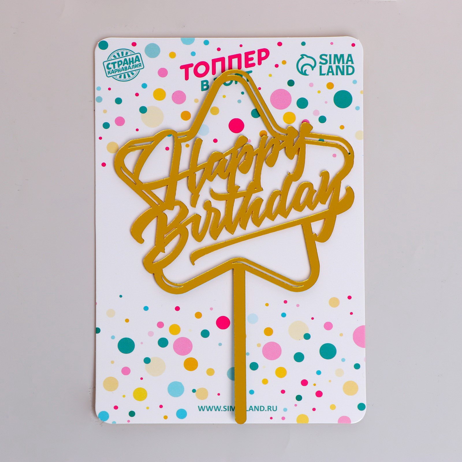Топпер "С днём рождения", звезда, 10x16.5x0.2 см., Страна Карнавалия, Китай