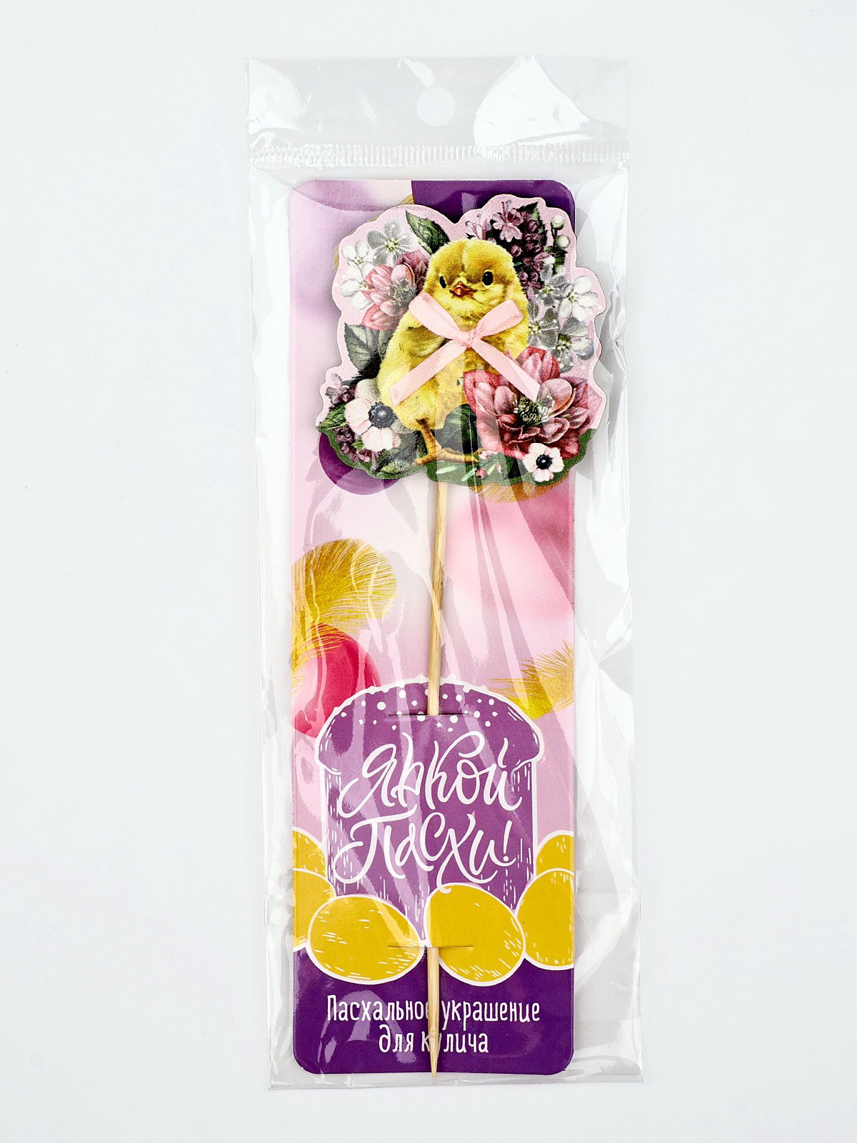 Топпер деревянный для украшения кулича "Цыплёнок" на пасху, 6.2 x 6.2 см, 6x19x0.5 см., Сима-ленд, Китай