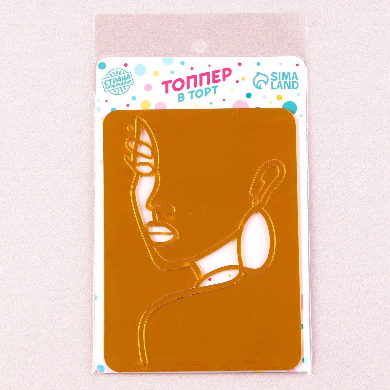 Украшение для торта "Девушка с серьгой", цвет золото, 15x11x0.5 см., Страна Карнавалия, Китай