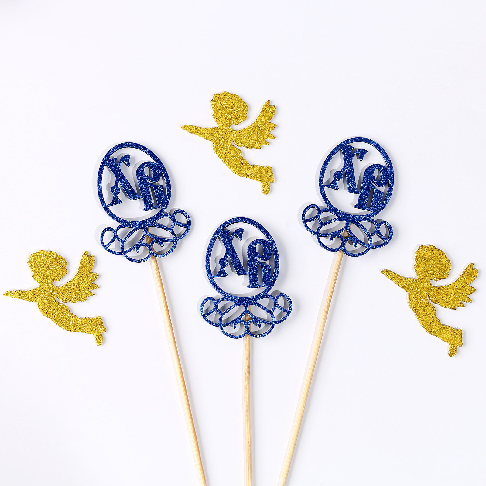 Набор пасхальных топперов "ХВ", 3 шт., синие, 14.5 см, ангелы золотые 4.5 см, Страна Карнавалия, Россия