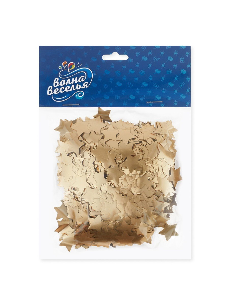 Конфетти "Звезда", золото, хром, 1.5 см, 50 г, Волна Веселья, Китай